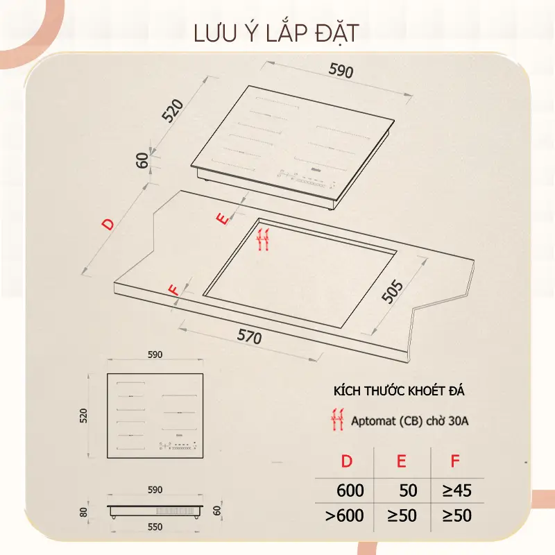 Mặt bếp được làm từ Kính pha lê titan sang trọng, chịu lực, chịu nhiệt tốt và dễ dàng vệ sinh. Với khung vỏ bằng Thép mạ kẽm bền bỉ và kích thước cắt mặt đá tiêu chuẩn 560 x 505 x 80 mm, Bếp từ RT03 là lựa chọn lý tưởng để nâng cấp không gian bếp của bạn.