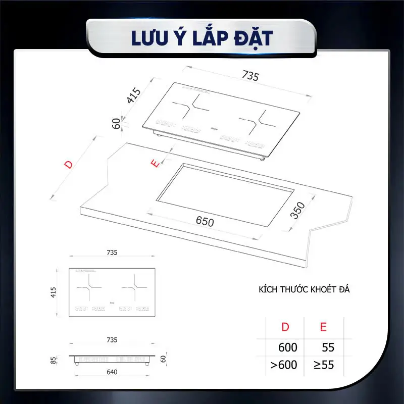 Với khung vỏ bếp làm từ Thép mạ điện và quạt tản nhiệt động cơ lõi đồng hiệu quả, Bếp từ DS1 là sự đầu tư bền vững, mang lại sự tiện lợi, an toàn và hiện đại cho căn bếp của bạn. Kích thước mặt cắt 650*350mm giúp việc lắp đặt trở nên dễ dàng.