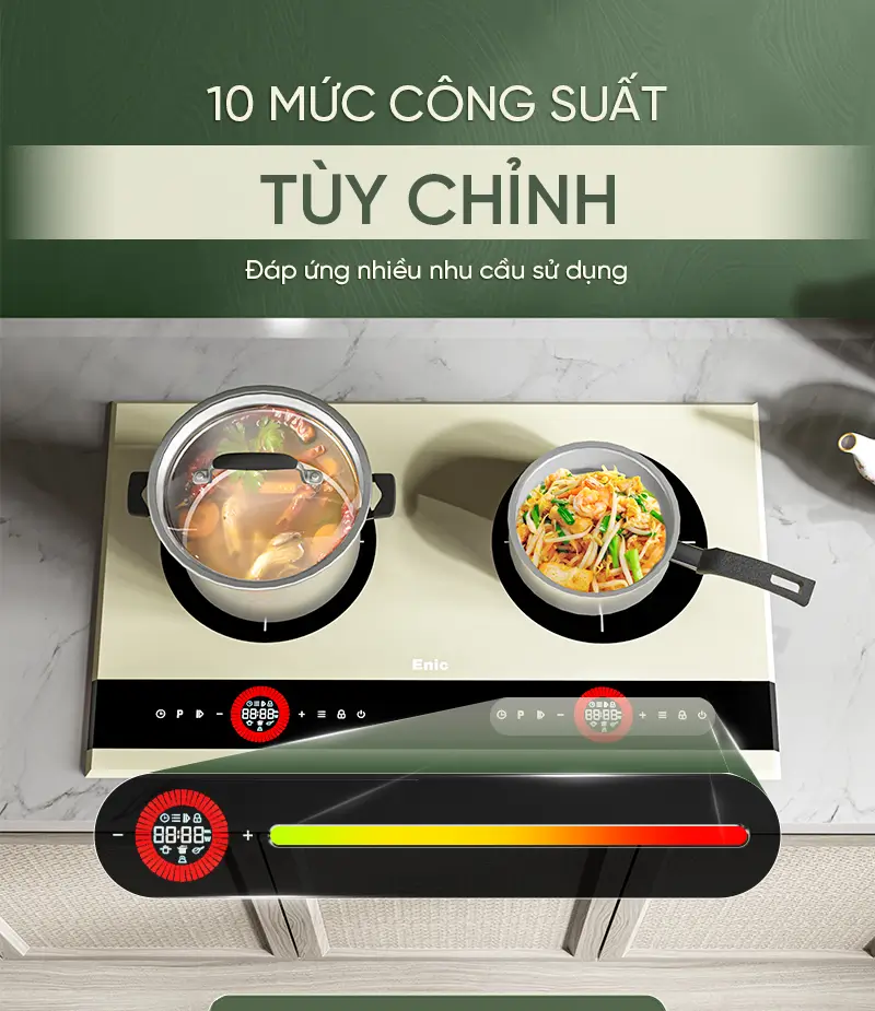Inverter giúp tối ưu hóa điện năng tiêu thụ. Bếp cung cấp tới 10 mức công suất điều chỉnh, cho