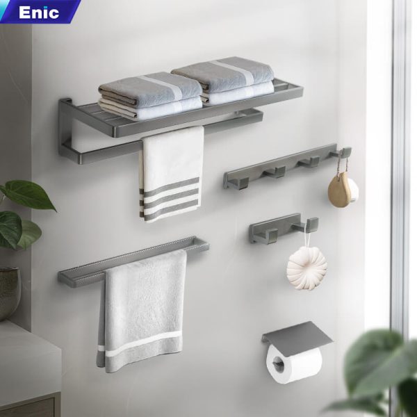 Với phương pháp lắp đặt khoan tường, các phụ kiện trong bộ combo phụ kiện này được cố định vững chắc, đảm bảo an toàn tuyệt đối trong quá trình sử dụng. Enic S03 có hai lựa chọn màu sắc là màu inox truyền thống và màu xám thanh lịch, giúp bạn dễ dàng phối hợp với mọi phong cách nội thất.