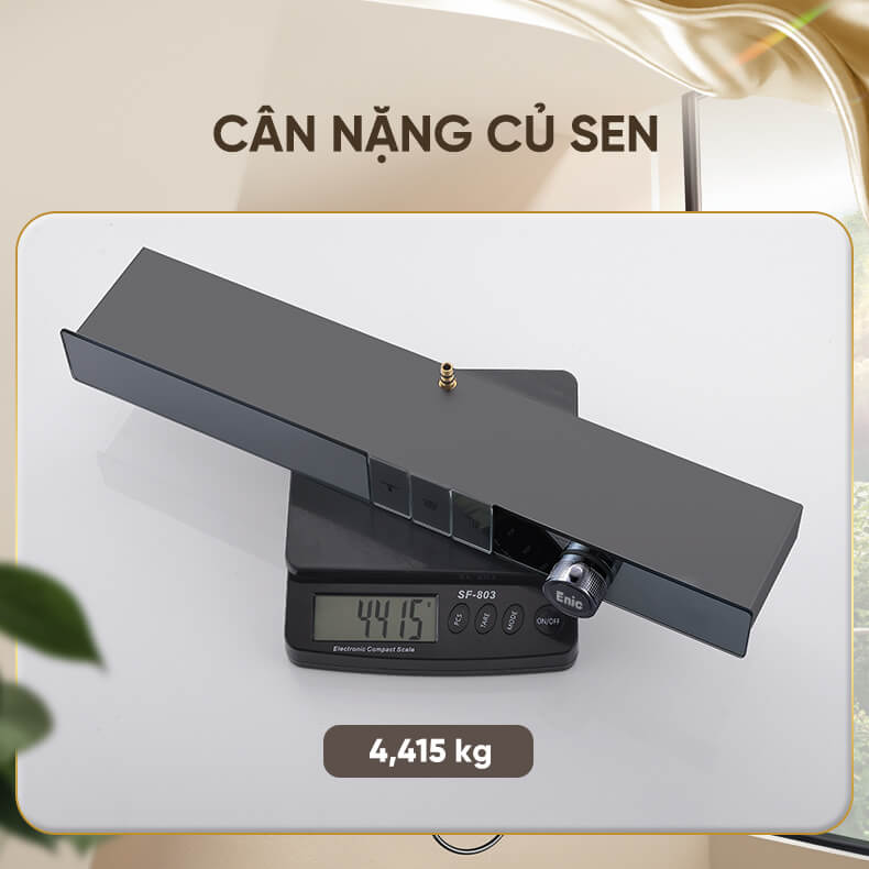 - Củ sen: Có thiết kế sang trọng. Được làm bằng đồng thau 59A mạ PVD chống hoen gỉ ăn mòn, chống trầy xước, chống phai màu. Kích thước củ sen lớn, thuận tiện để đồ dùng gọn gàng.