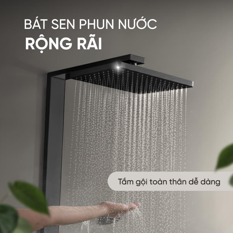 - Bát sen, tay sen: Có diện tích lớn đảm bảo diện tích phun nước rộng, và được làm từ nhựa ABS cao cấp, xoay 360 độ. Lỗ thoát nước silicon đàn hồi cao, phun nước đầy đặn, êm ái