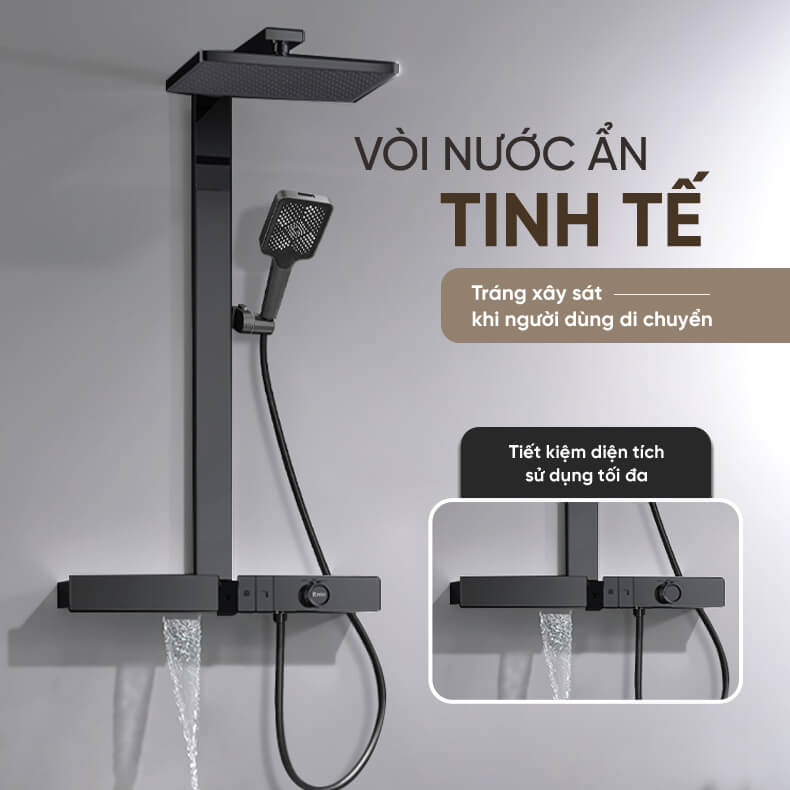- Vòi nước ẩn tinh tế, tránh xây sát khi người dùng di chuyển, tiết kiệm diện tích tối đa