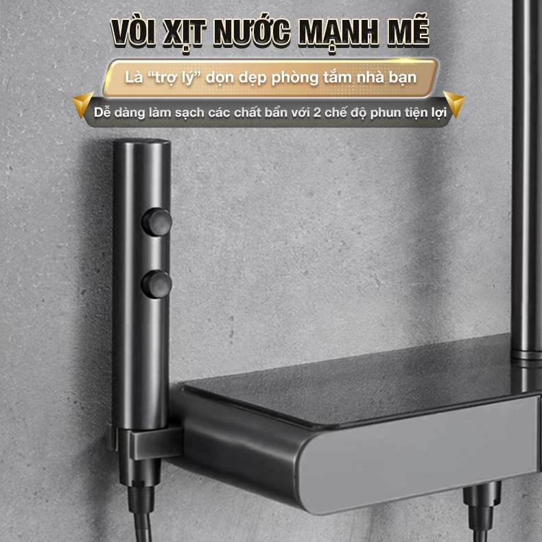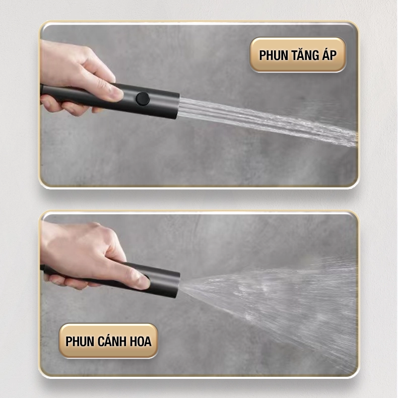 - Vòi xịt nước mạnh mẽ 2 chế độ: phun tăng áp và phun cánh hoa