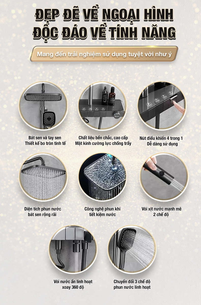 Bên cạnh đó sen tắm của Enic còn có 10 tính năng nổi bật như sau: