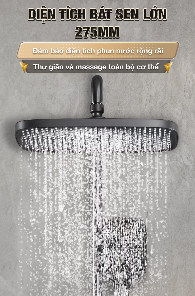 - Diện tích phun nước bát sen rộng rãi 275mm, thoải mái thư giãn, tắm gội toàn thân