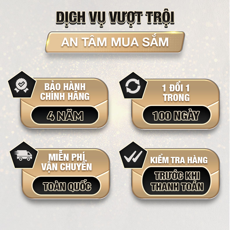 - Chất liệu bền bỉ, cao cấp. Mặt kính cường lực chống trầy