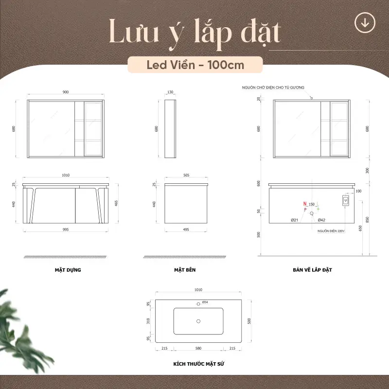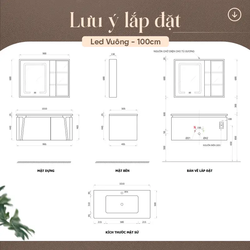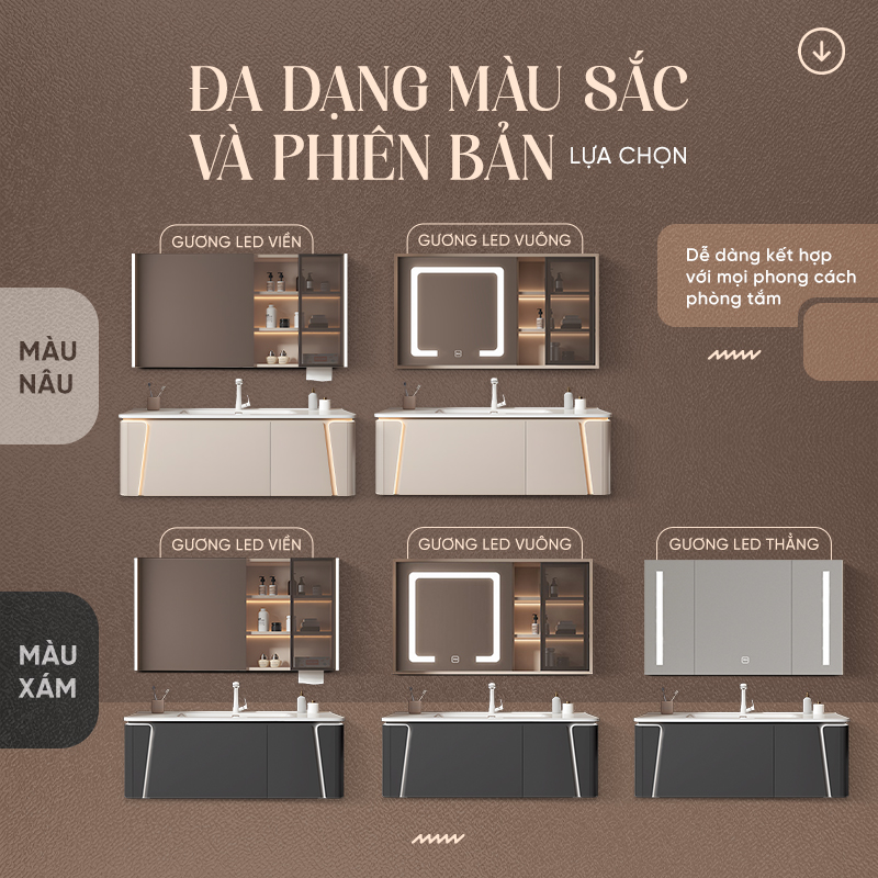 led gương cham nhạy, soi rõ đẹp, các ngăn tủ bố trí hợp lí. hộc tủ dưới to rộng, đường ray hay bản lề đều mượt. chất lượng