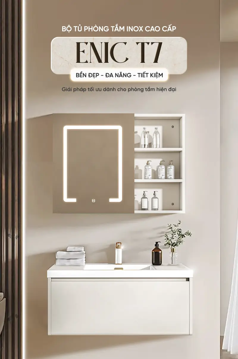 Bộ tủ gương lavabo phòng tắm inox cao cấp Enic T7