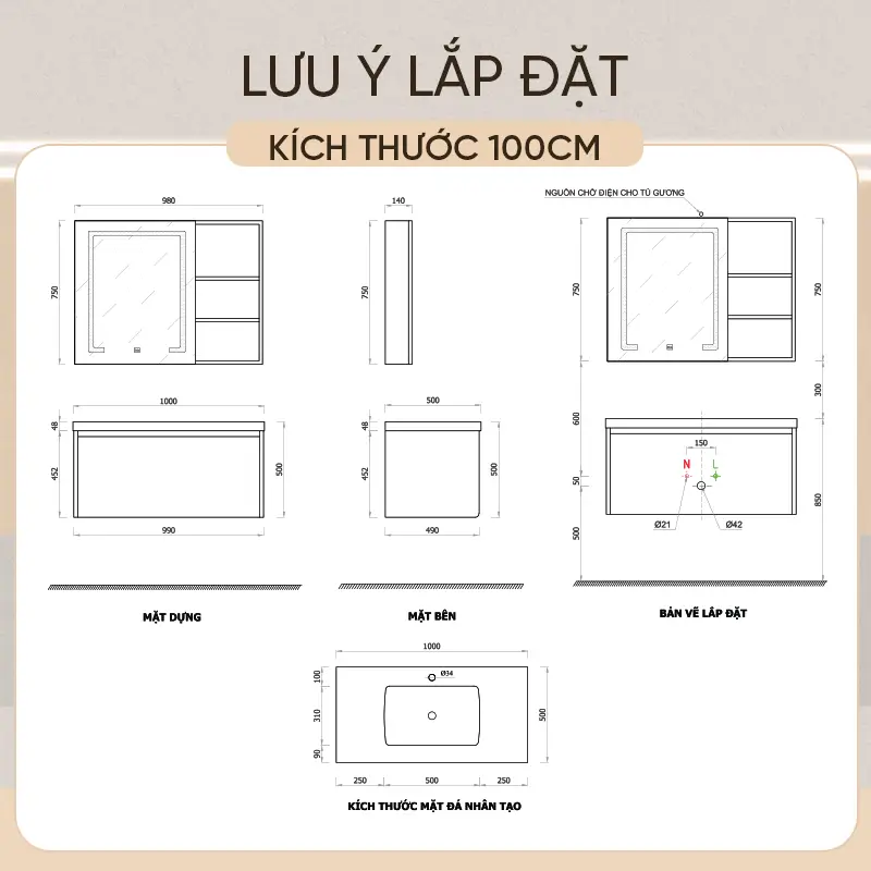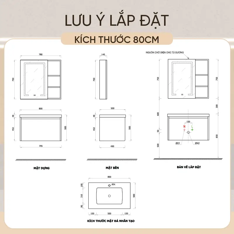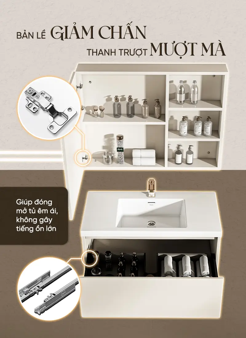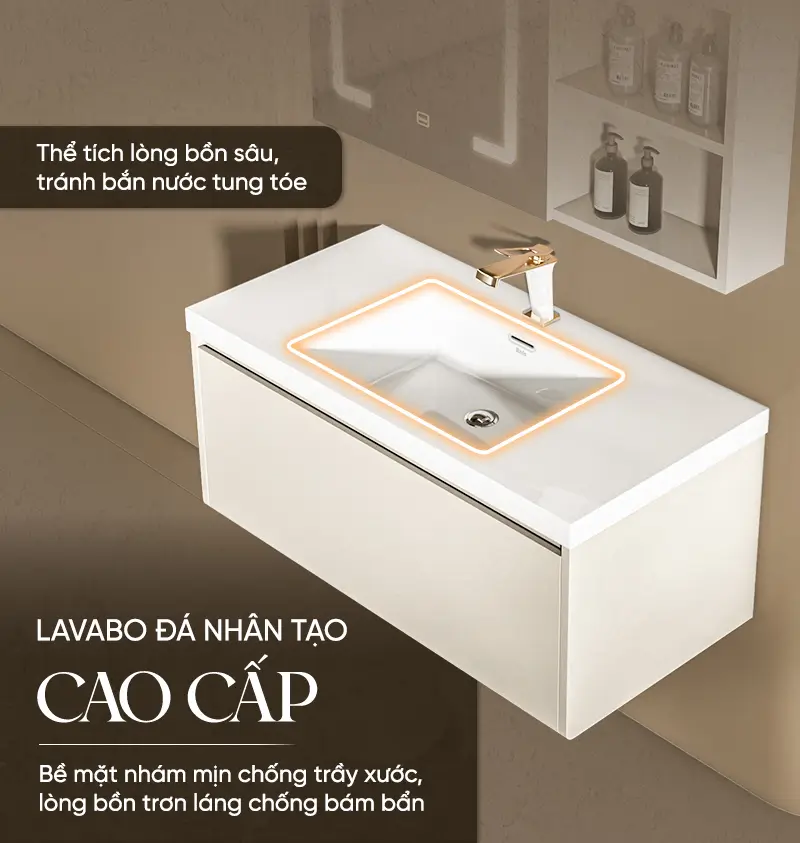 Kết cấu chắc chắn: Khung tủ chịu lực cao, đảm bảo sự vững chãi cho phần tủ lavabo bên trên và không gian lưu trữ bên dưới.