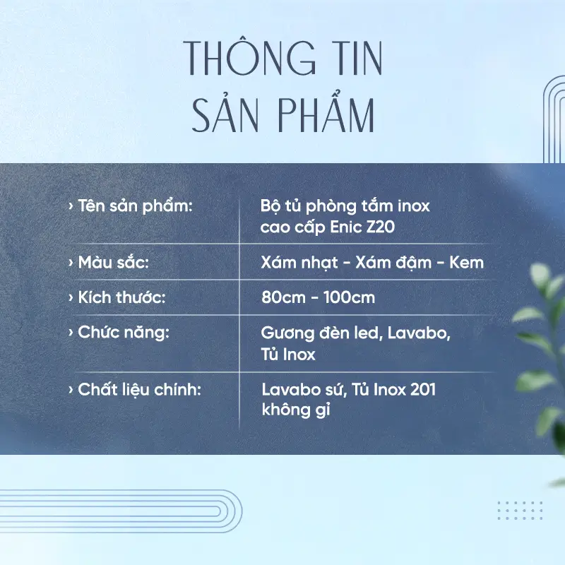 Lưu ý: Để tăng thêm phần sang trọng, bạn nên kết hợp bộ tủ inox Z20 cùng các mẫu vòi Lavabo màu Xám PVD hoặc Đen mờ của Enic. Sự đồng bộ về màu sắc sẽ tạo nên một không gian phòng tắm cực kỳ ấn tượng và chuyên nghiệp.