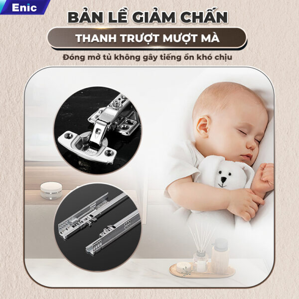 - Bản lề giảm chấn, thanh trượt mượt mà không gây tiếng ồn