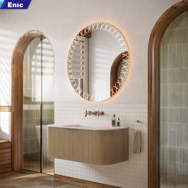 - Gương tráng bạc thông minh: Thiết kế đèn led chữ X độc đáo, nhạy bén với cảm ứng 1 chạm, đèn LED 3 màu tùy chỉnh.