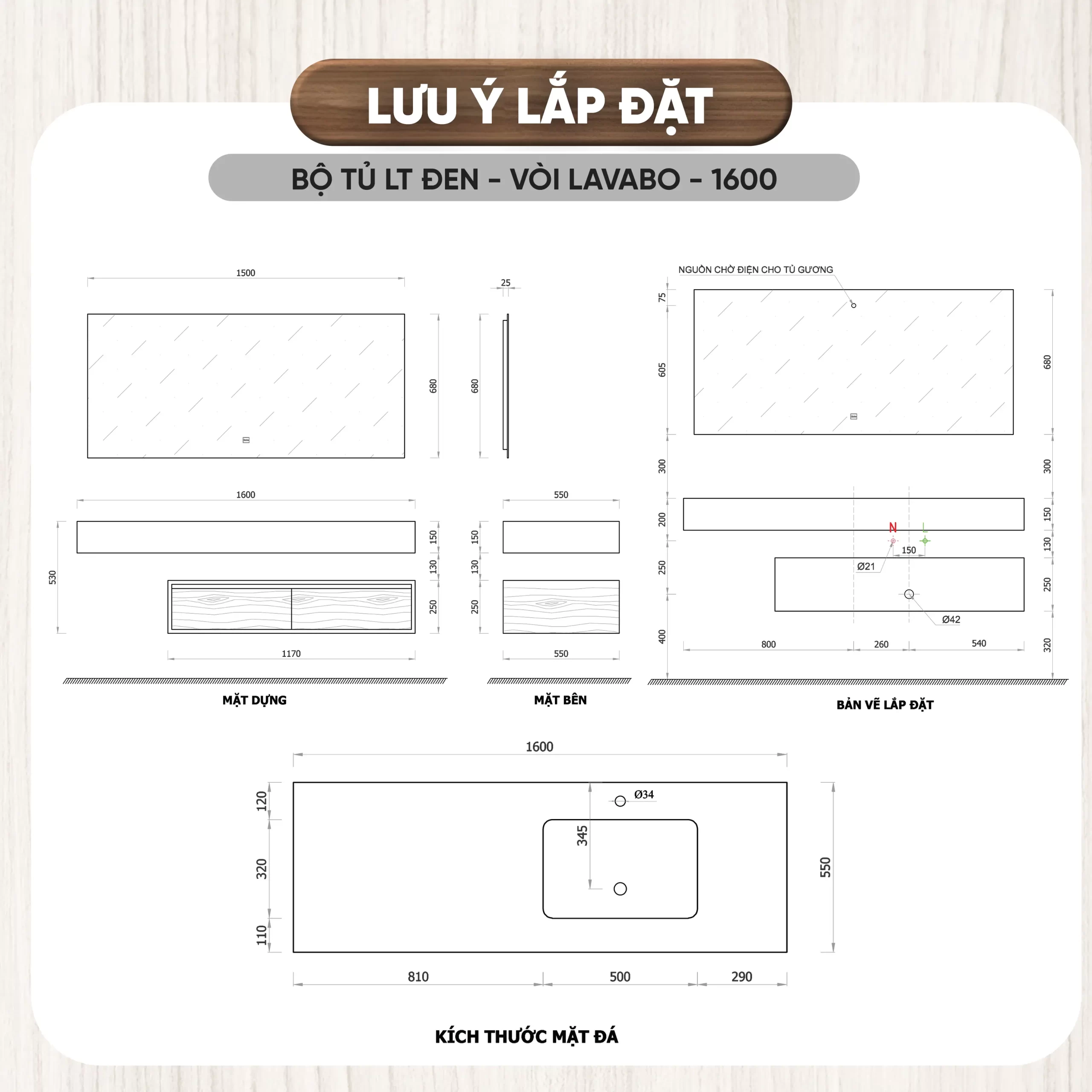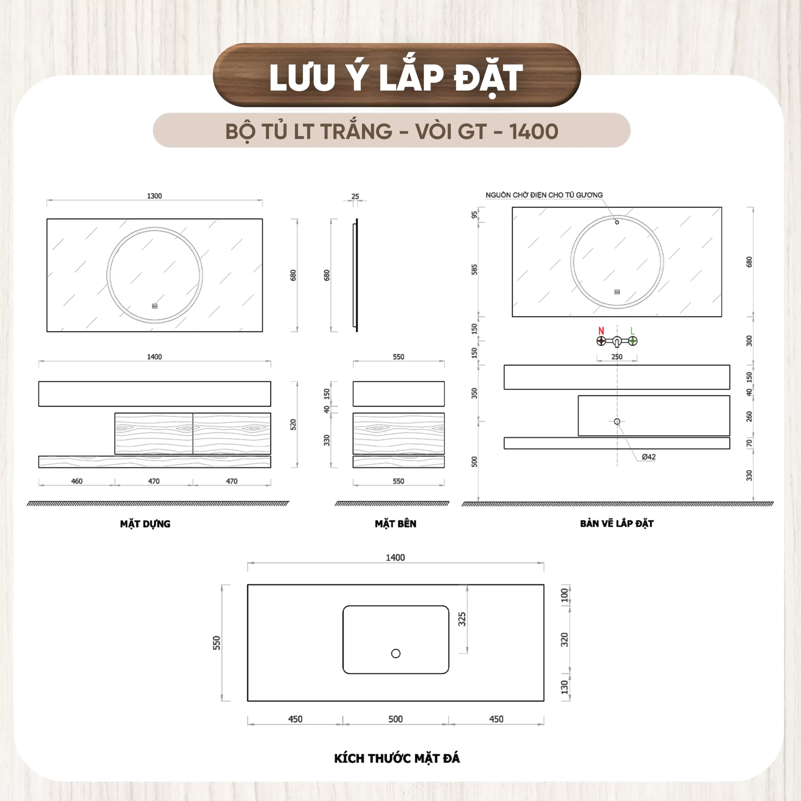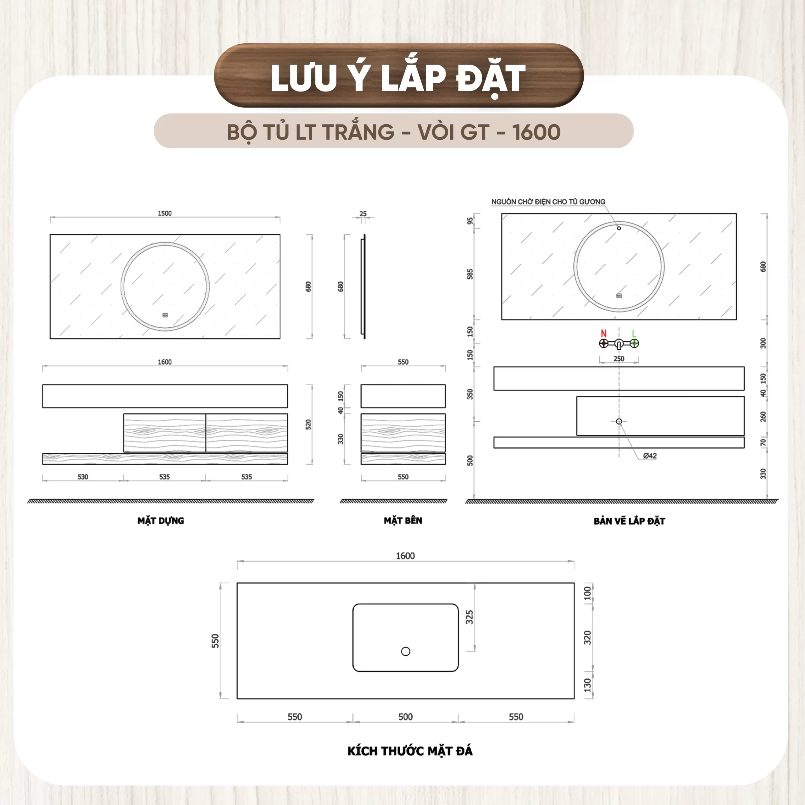 - Chất liệu tủ: Plywood cao cấp đạt tiêu chuẩn E1, giúp bảo vệ chống thấm nước, chống ẩm mốc, không bị biến dạng theo thời gian, thân thiện với môi trường.