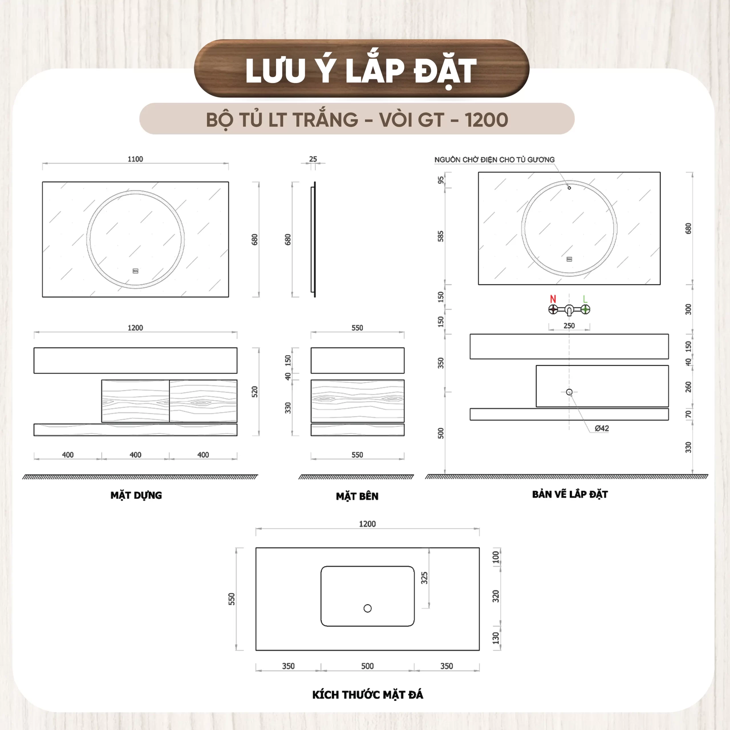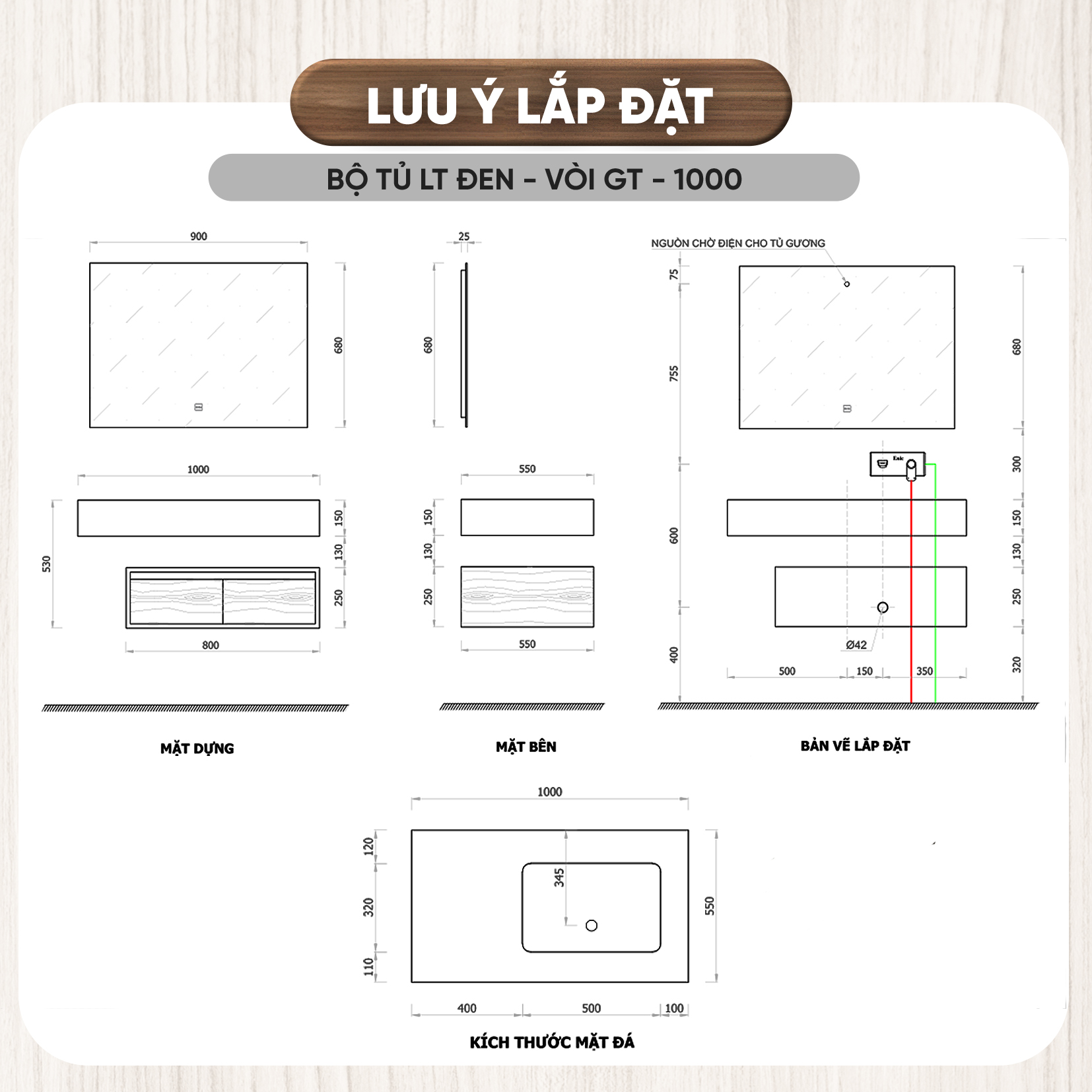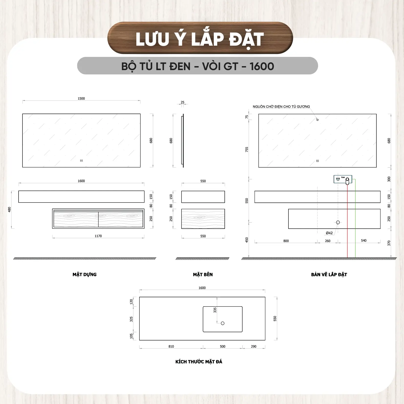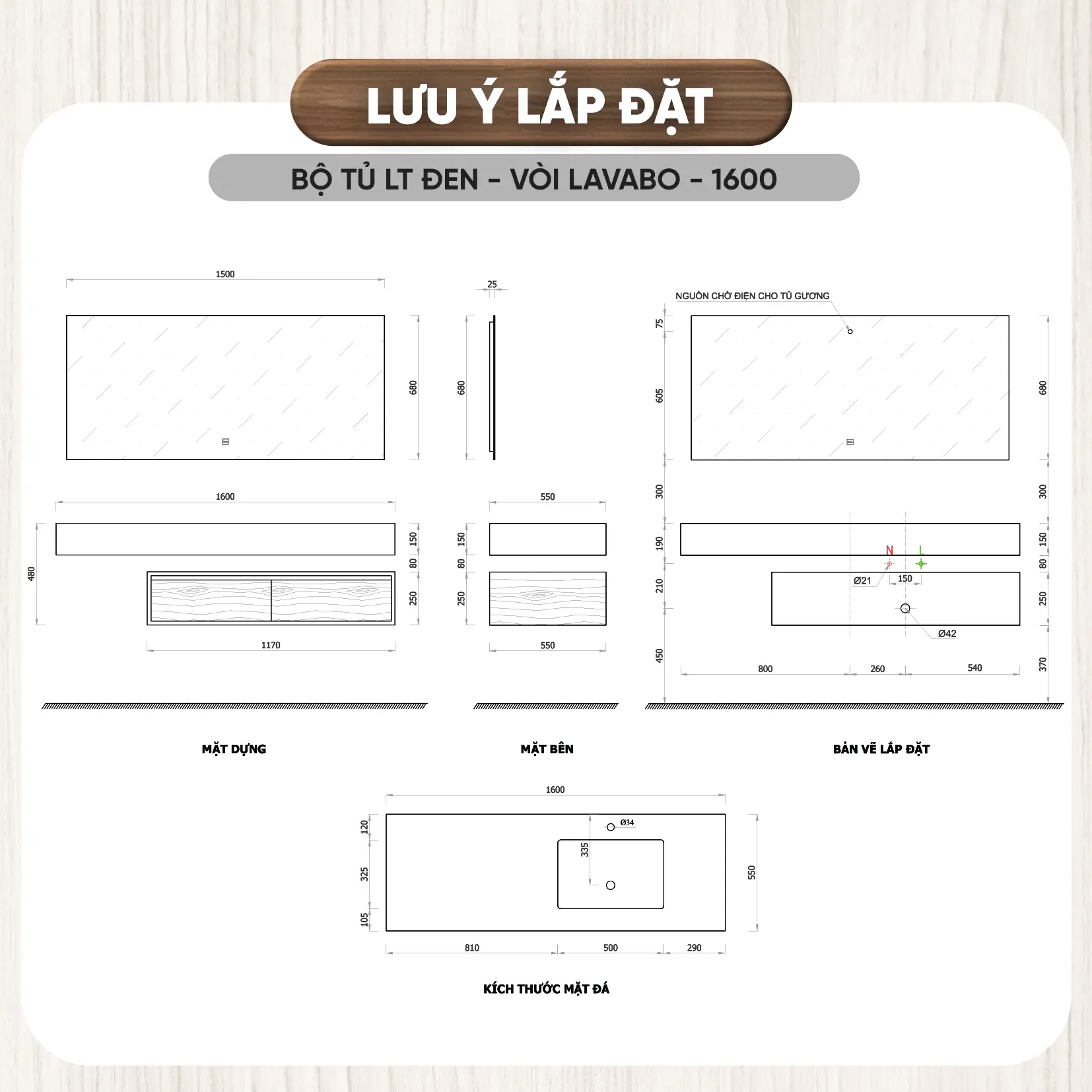 - Chất liệu tủ: Plywood cao cấp đạt tiêu chuẩn E1, giúp bảo vệ chống thấm nước, chống ẩm mốc, không bị biến dạng theo thời gian, thân thiện với môi trường.