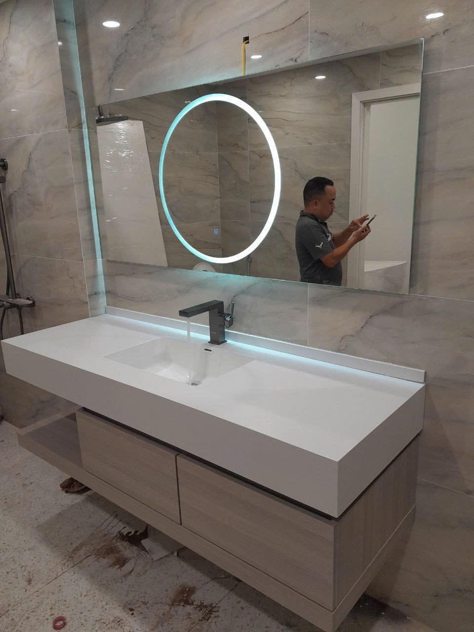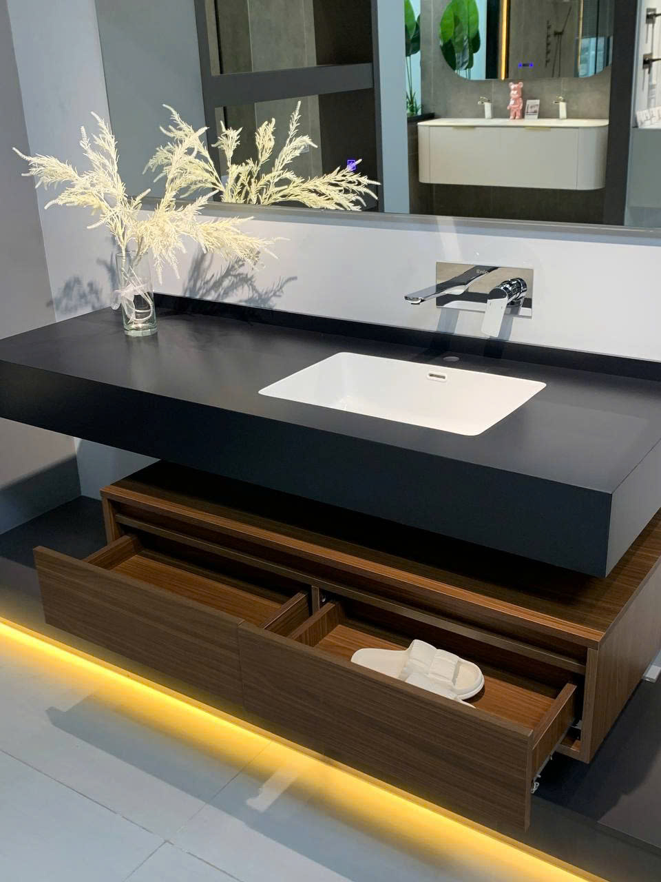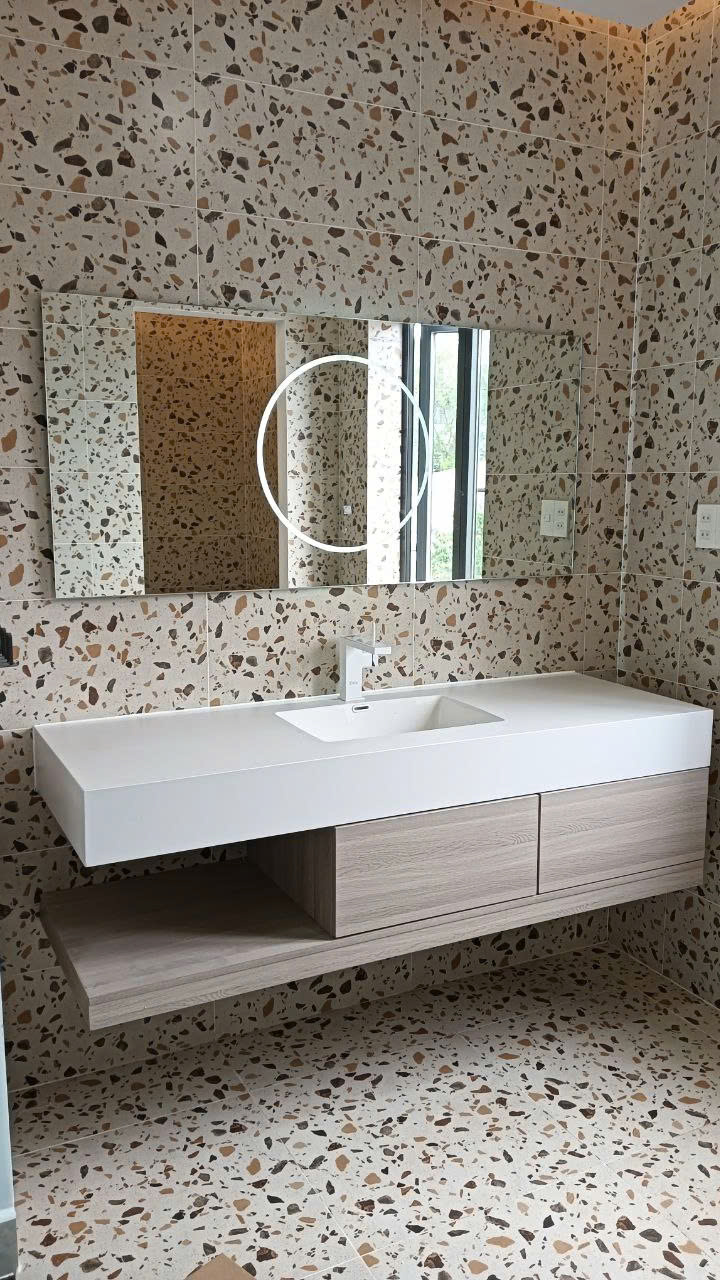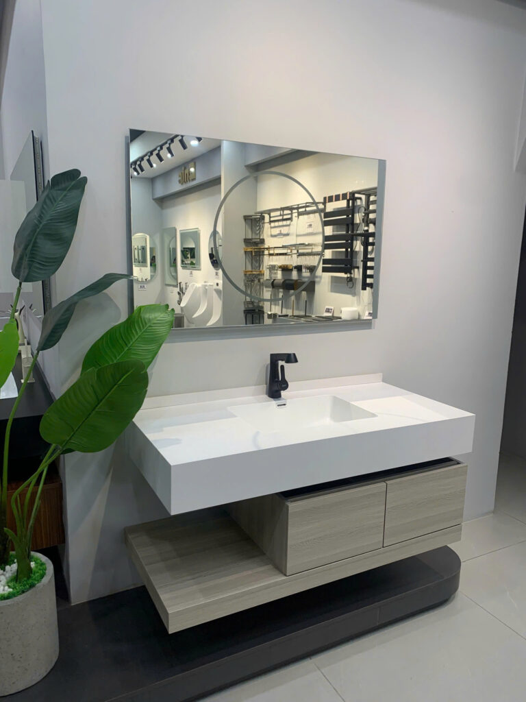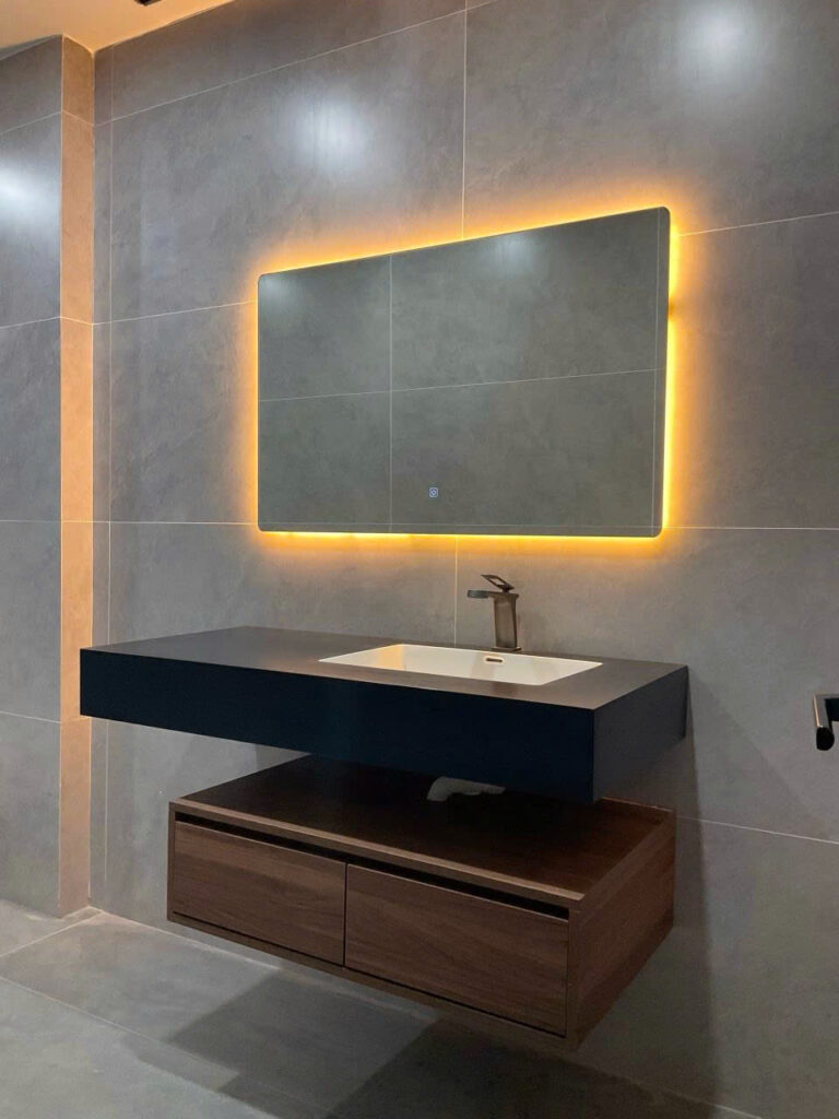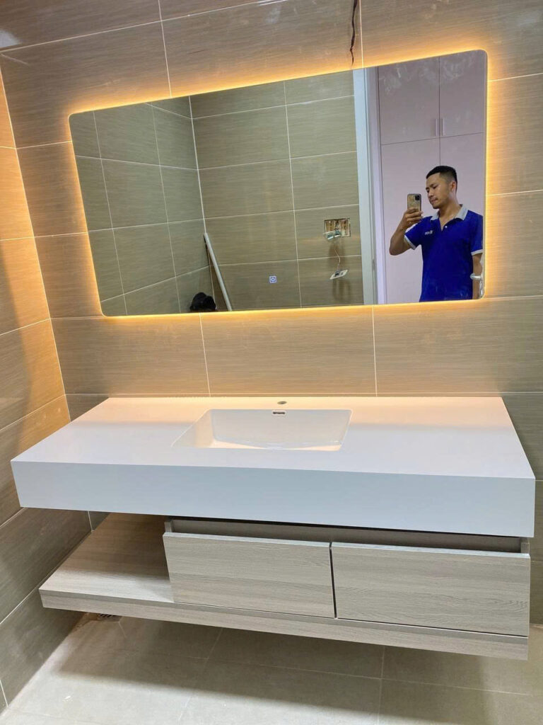 BỘ Tủ này có cái gương hiện đại ghê, có khử sương mờ thông minh, mình không cần lo gương bị ố mờ mịt, trang điểm, chăm sóc da vô tư