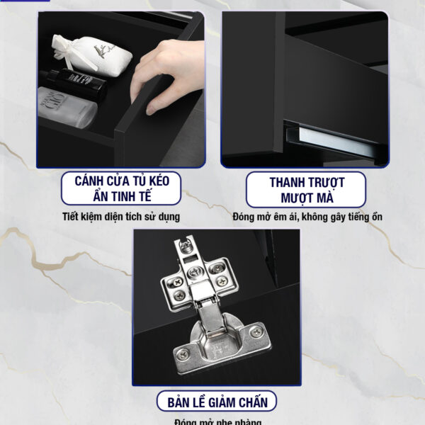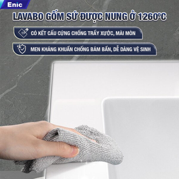 Lavabo gốm sứ cao cấp, bền mặt men kháng khuẩn với khả năng chống ăn mòn và chịu nước tốt của inox cũng giúp bộ tủ lavabo duy trì được vẻ đẹp và sự chắc chắn qua thời gian. Tính năng đèn led chiếu sáng tạo điều kiện vệ sinh cá nhân, trang điểm thuận tiện hơn.