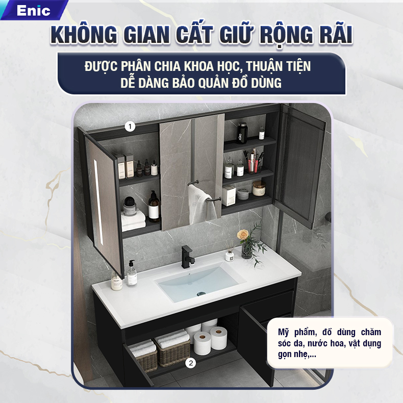 Bộ tủ gương lavabo phòng tắm inox Enic ST01