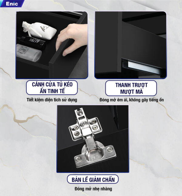 Tủ lavabo Enic ST01 Inox là một sự kết hợp hoàn hảo giữa thiết kế đẳng cấp và tính năng tiện ích, tạo nên điểm nhấn độc đáo cho không gian phòng tắm của bạn.