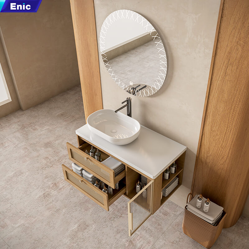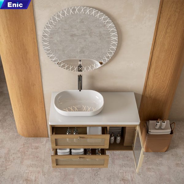 Với vẻ đẹp tinh tế và tiện ích vượt trội, bộ tủ phòng tắm mây đan Enic GM32 là lựa chọn hoàn hảo để nâng tầm không gian sống của bạn. Sản phẩm kết hợp giữa thiết kế hiện đại và nét thủ công truyền thống, sử dụng chất liệu gỗ plywood phủ melamine cao cấp, có khả năng chống ẩm mốc và mối mọt.