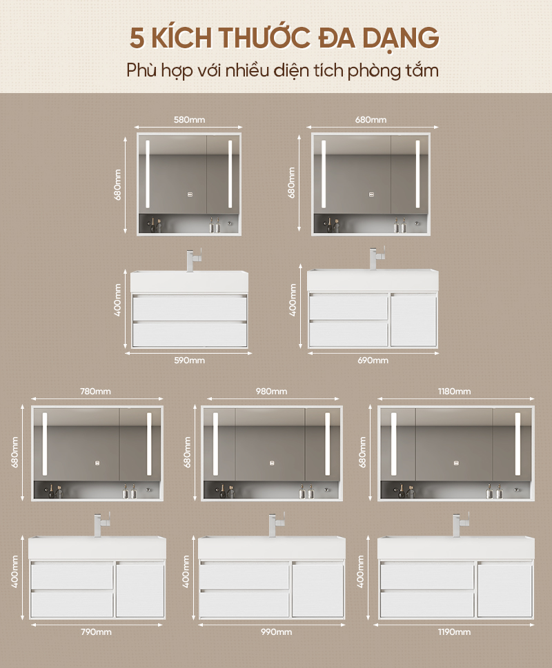 Bộ sản phẩm này có hai lựa chọn gương: Gương led thẳng cảm ứng một chạm hoặc Gương thường. Gương LED thẳng không chỉ là vật dụng soi chiếu mà còn là một kho lưu trữ ẩn tiện dụng. Gương sử dụng phôi Thái dày 4mm, cho hình ảnh rõ nét và độ bền cao. Chỉ với một chạm, đèn LED sẽ cung cấp ánh sáng hoàn hảo, nâng cao trải nghiệm sử dụng.