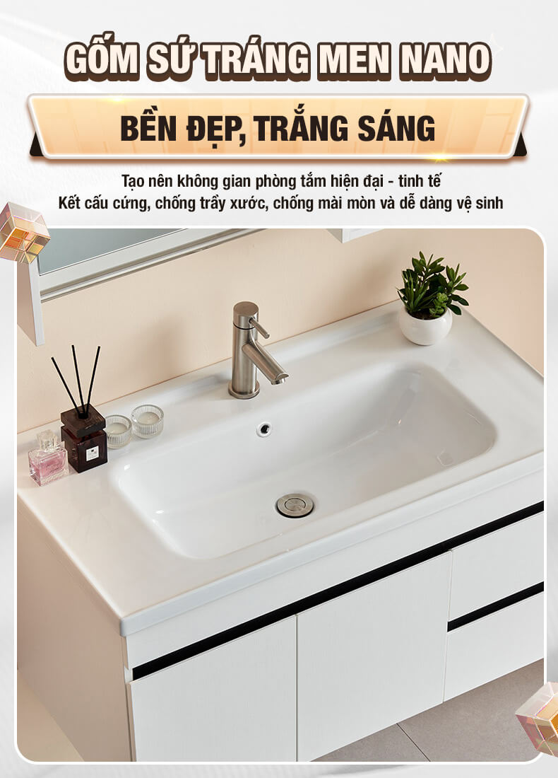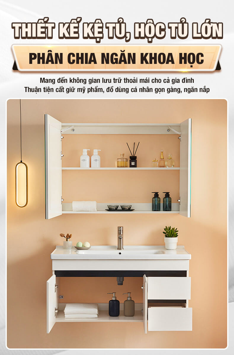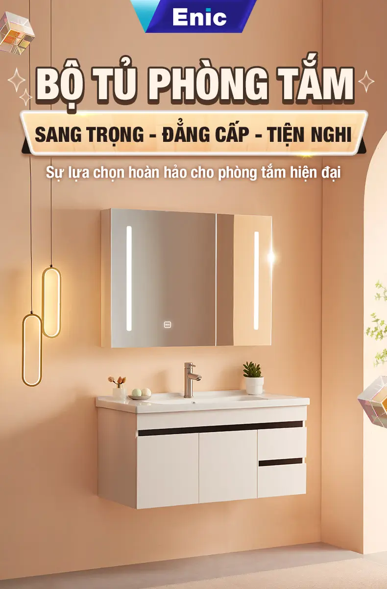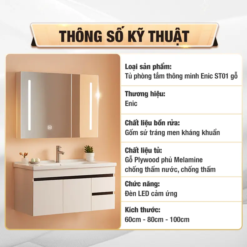 Bộ tủ gương lavabo phòng tắm thông minh Enic ST01 60cm – 100cm