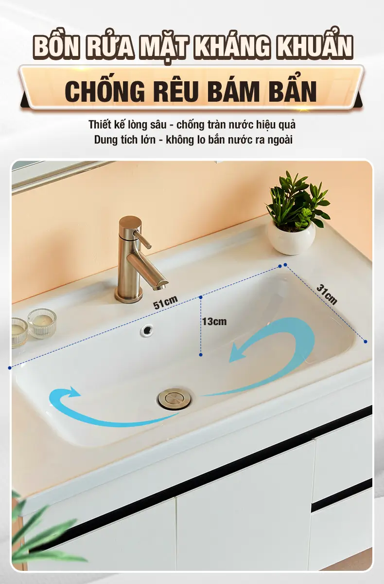 - Chất liệu bồn rửa: Gốm sứ tráng men kháng khuẩn