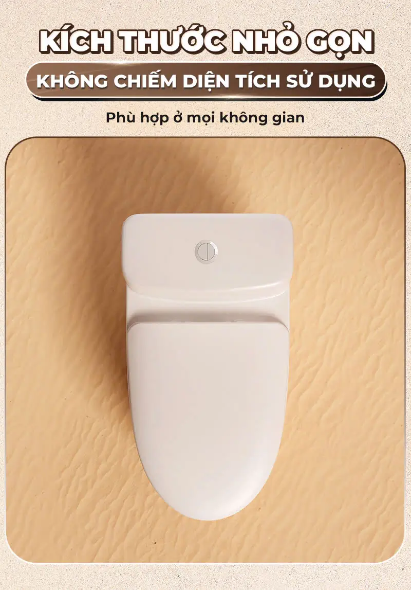 - Thiết kế bo cạnh mềm mại & Nắp kín tinh tế: Ngoại hình của bồn cầu được chăm chút tỉ mỉ với các góc bo cong quyến rũ, kết hợp cùng thiết kế nắp kín tạo nên vẻ ngoài chỉnh chu, mềm mại. Thiết kế này không chỉ đẹp mắt mà còn giúp việc vệ sinh bề mặt bên ngoài trở nên cực kỳ dễ dàng, không đọng nước hay bụi bẩn.
