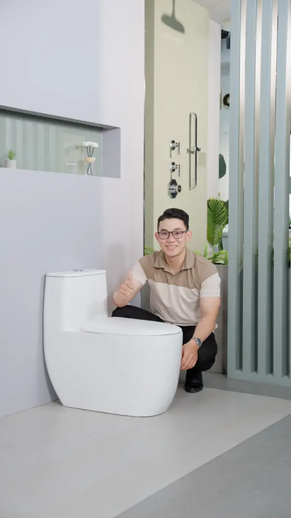 Phòng vệ sinh của con trong phòng ngủ mình chọn mẫu này, nhìn tròn trịa khéo lắm, như thiết kế ra là dành cho trẻ con vậy, còn mí phòng khác thì dùng bồn cầu thông minh cho hiện đại. cũng chọn enic lun, tháy giá okie lắm mà chất lượng