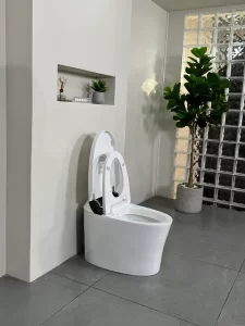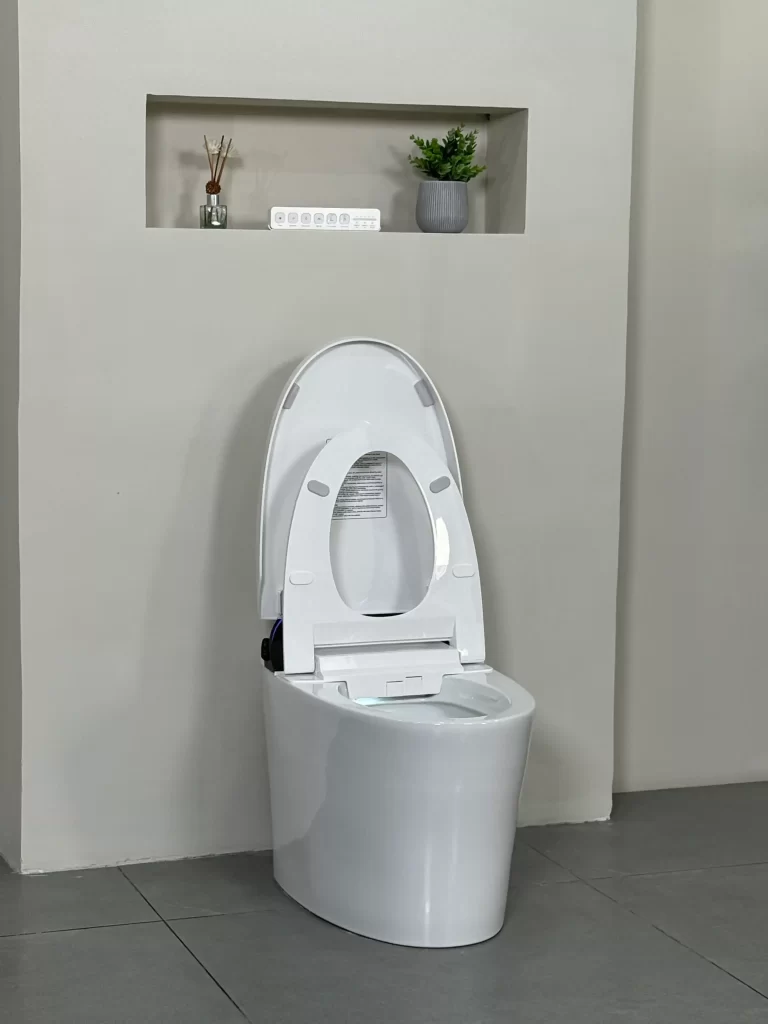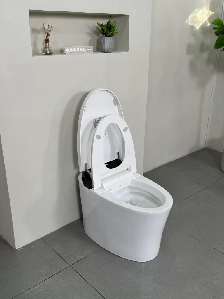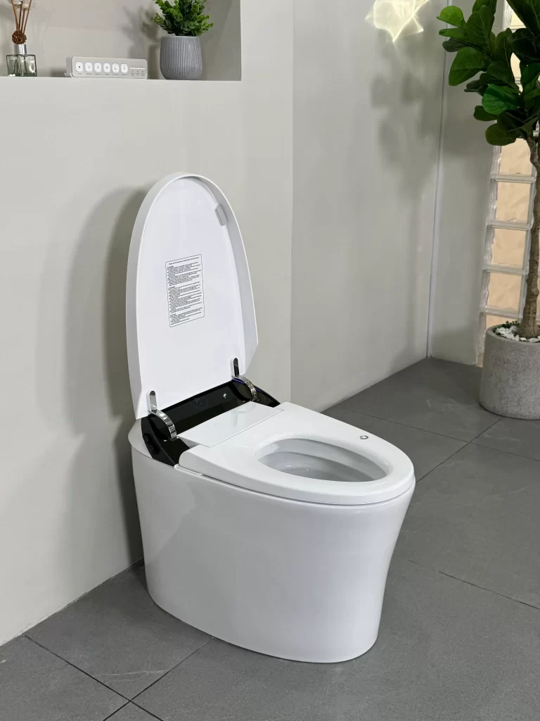 Tự động lật nắp & Cảm biến đá chân: Nhận diện người dùng thông minh, cho phép mở nắp hoặc xả nước mà không cần chạm tay vào bệ ngồi, bảo vệ sức khỏe khỏi vi khuẩn.