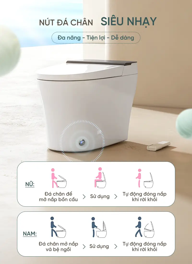bồn ok, cảm ứng mở chân nhạy, đứng lên đóng xả cũng nhạy, quạt sấy khô, ấm nhanh, dễ chịu