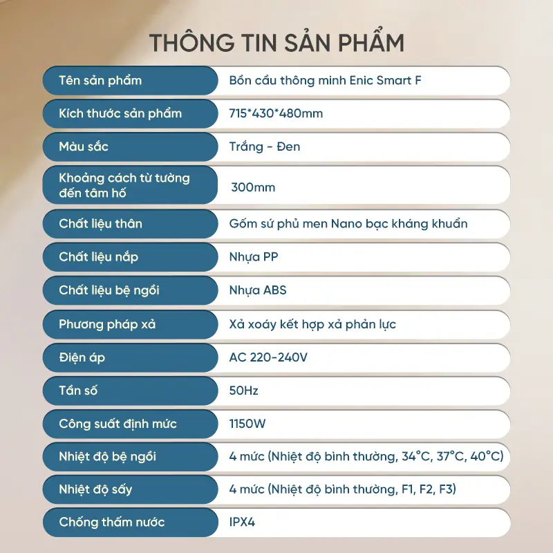 Bồn cầu thông minh Enic Smart F có kiểu dáng sang trọng cùng 12 ưu điểm: