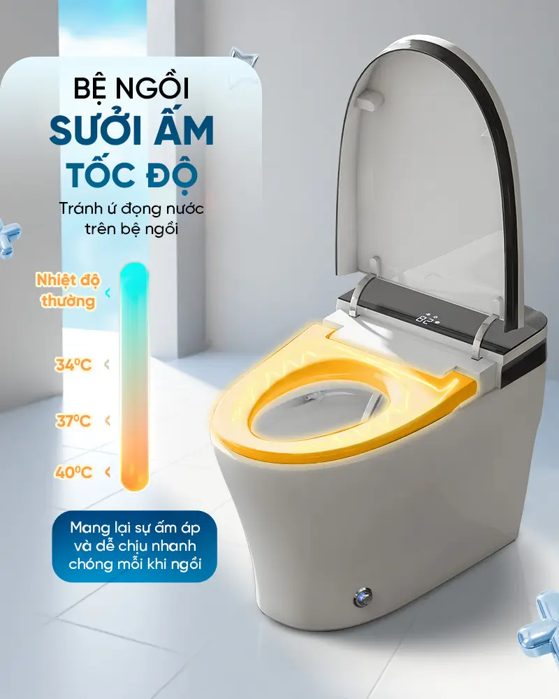 bồn cầu có hiện nhiệt độ bệ ngồi vs chỉnh đc bằng remote tiện xả nước êm, sạch. Mấy vòi xịt tự động rửa sạch,thử qua nhiều loại thông minh khác vẫn ưng mẫu này