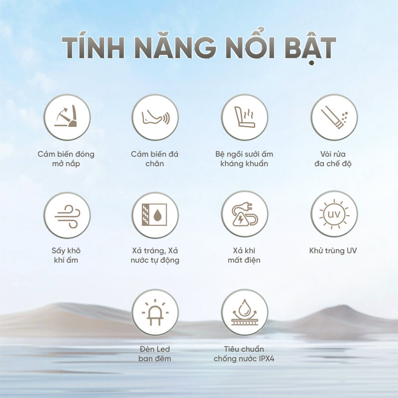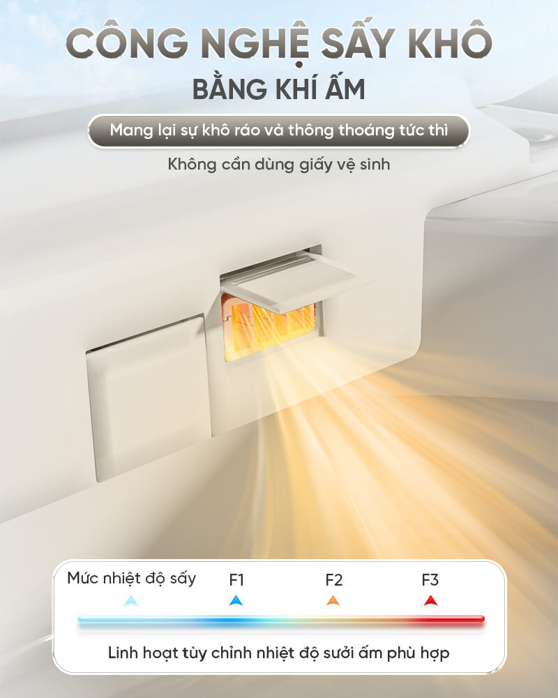 Tiện nghi 4 mùa: Bệ ngồi sưởi ấm và hệ thống sấy khô bằng khí ấm (4 mức nhiệt độ) mang lại sự thoải mái kể cả trong những ngày đông lạnh giá.