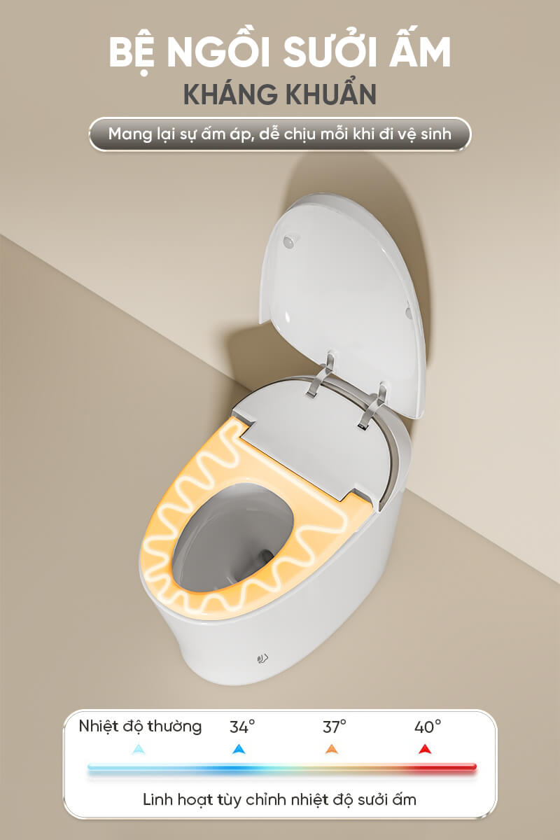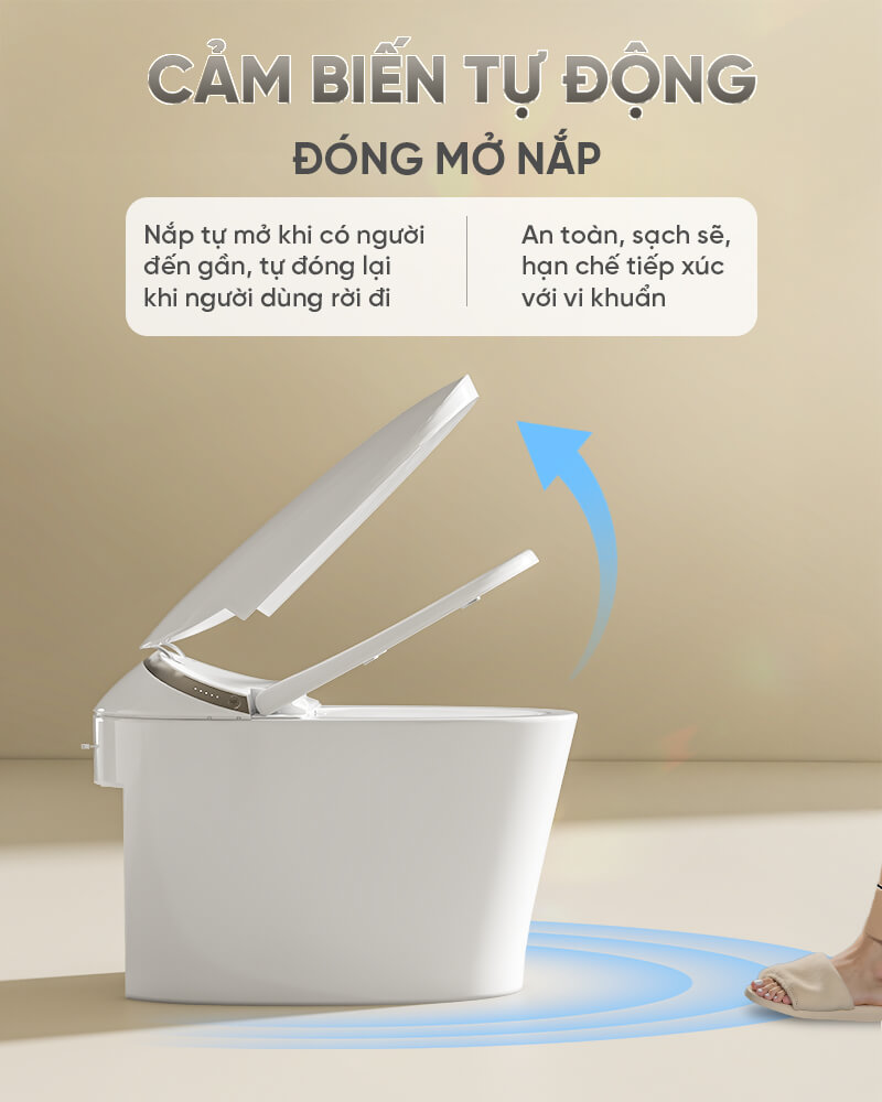 Tự động lật nắp: Cảm biến nhận diện người dùng để tự động mở/đóng nắp.