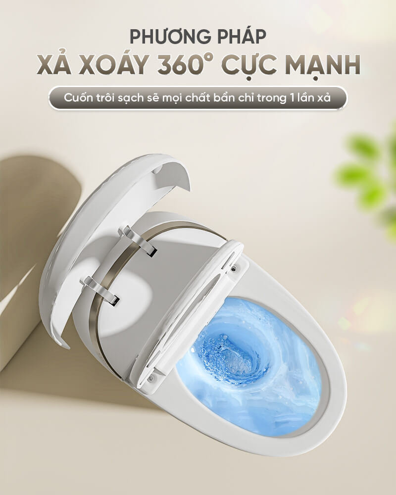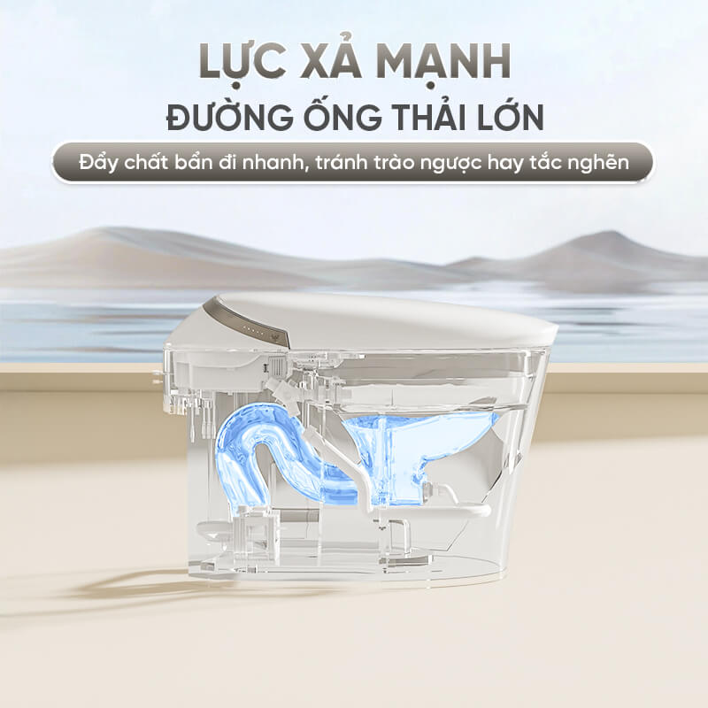 Xả xoáy kết hợp xả phản lực: Tạo ra dòng xoáy cực mạnh cuốn trôi mọi chất bẩn nhưng vẫn đảm bảo tiết kiệm nước và hạn chế tiếng ồn.