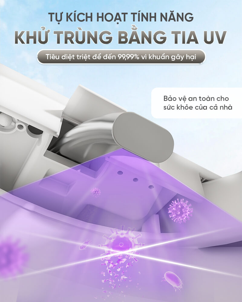 Khử khuẩn tia UV: Tiêu diệt vi khuẩn bám trên vòi xịt sau mỗi lần sử dụng.