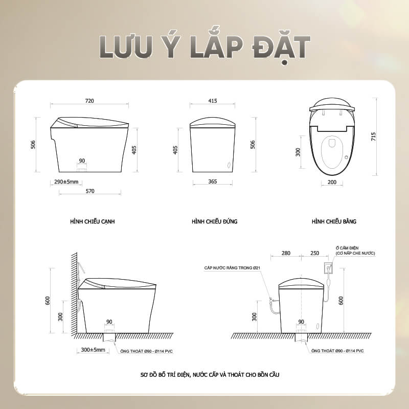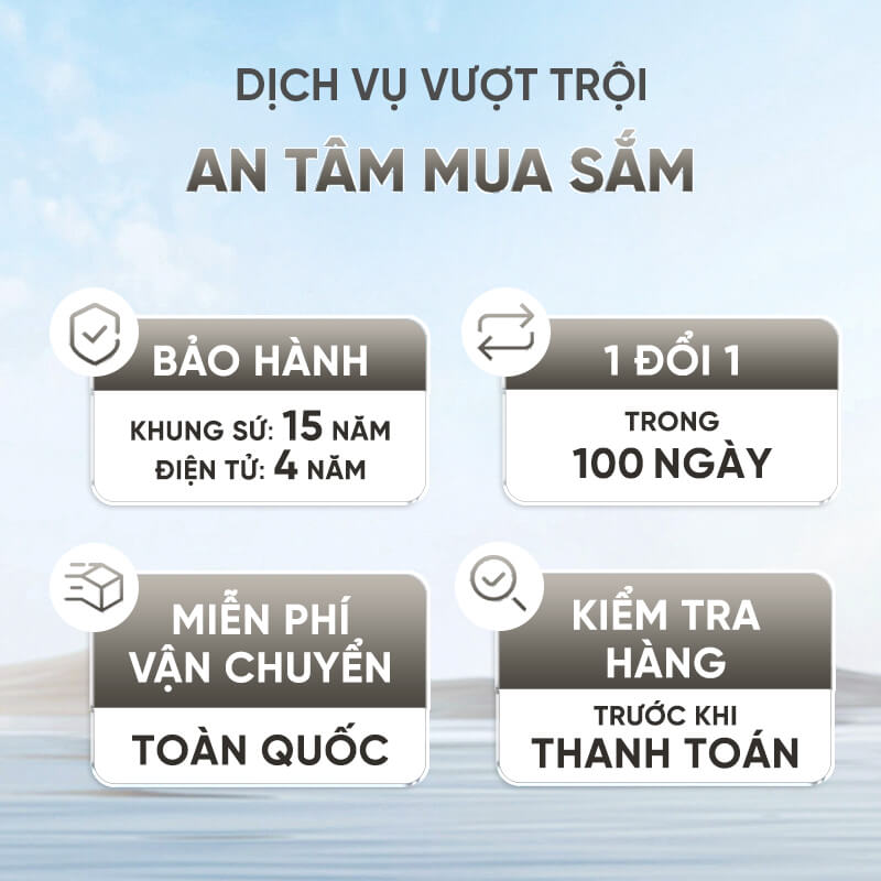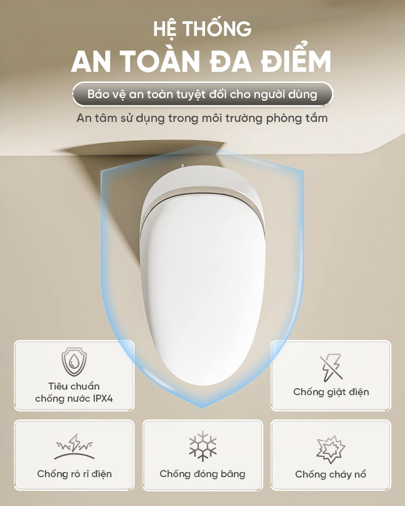 Tính năng dự phòng: Tích hợp pin dự phòng và hệ thống xả nước ngay cả khi mất điện, đảm bảo sinh hoạt không bị gián đoạn.
