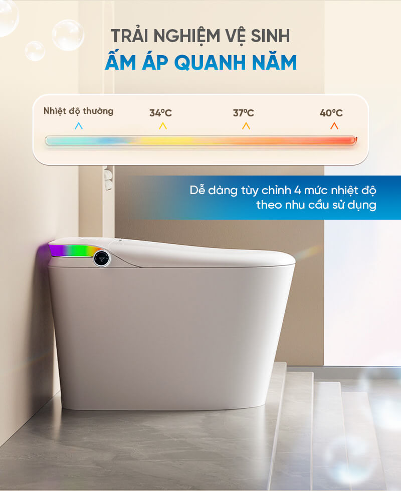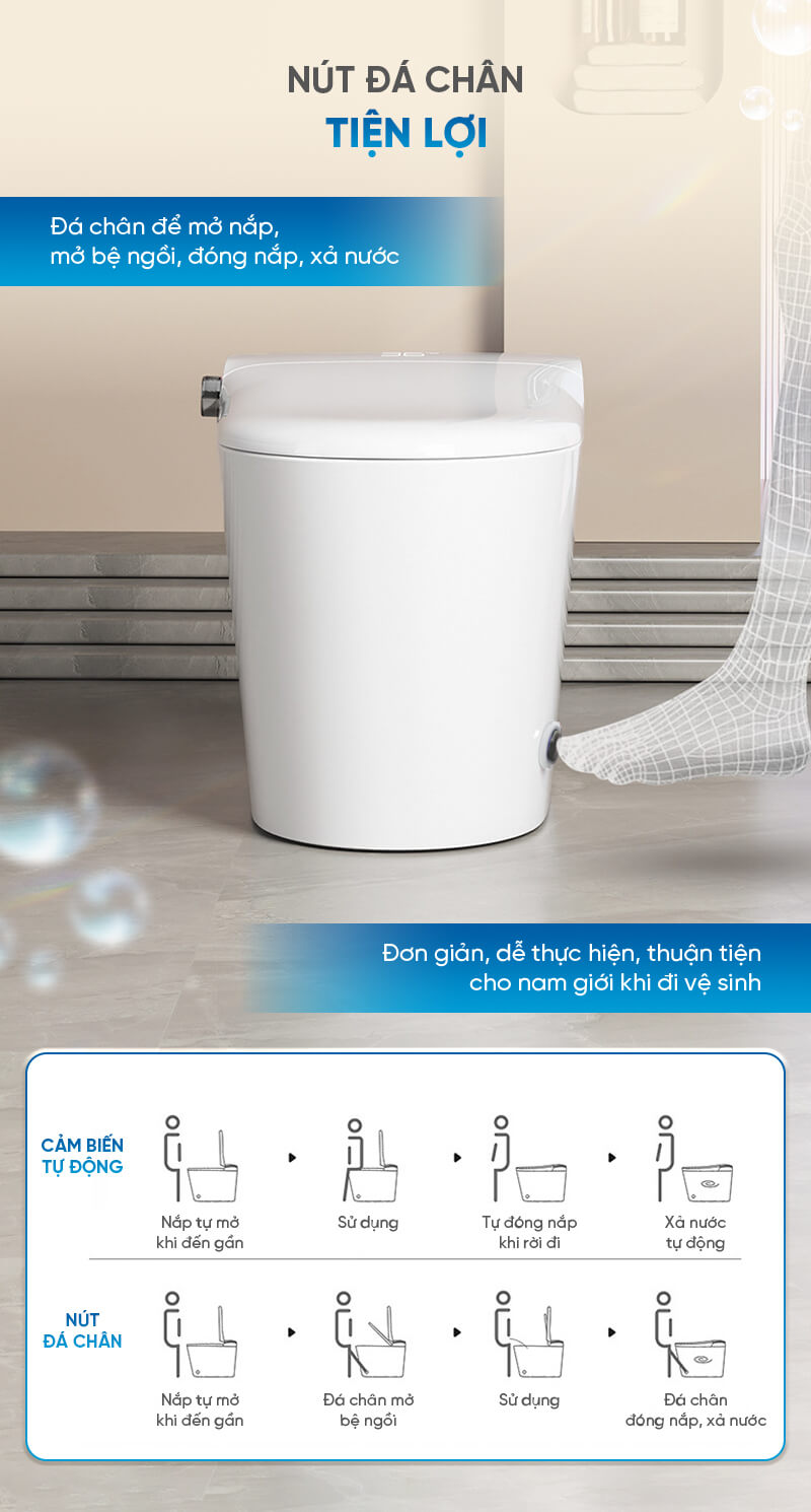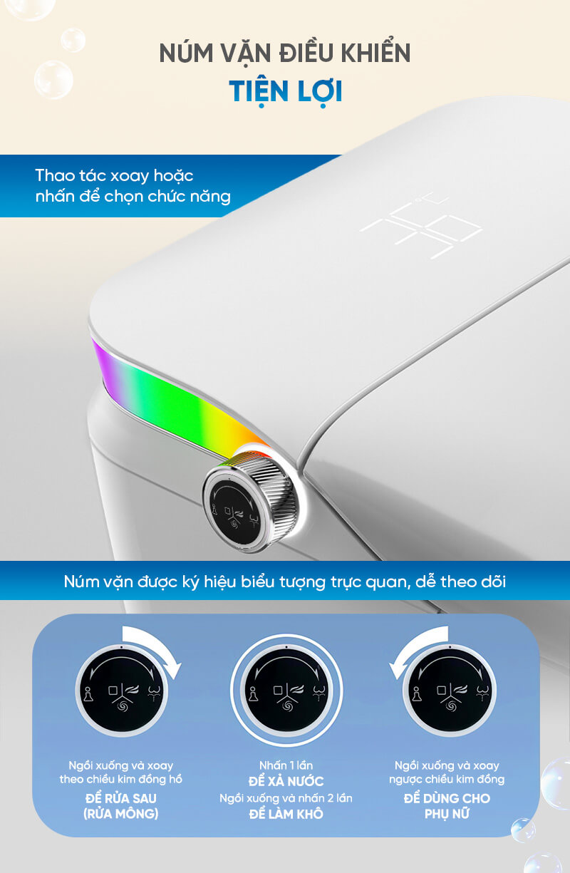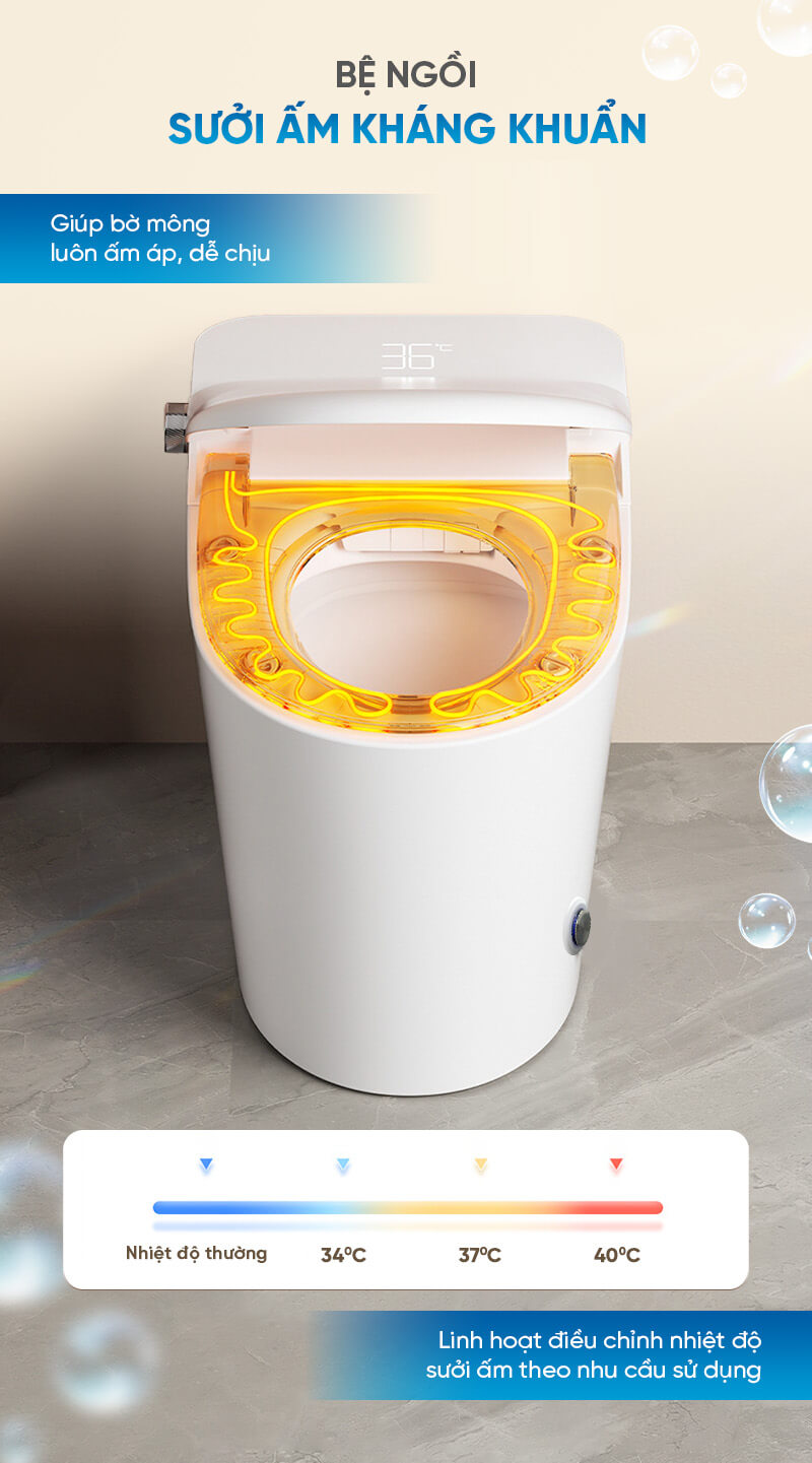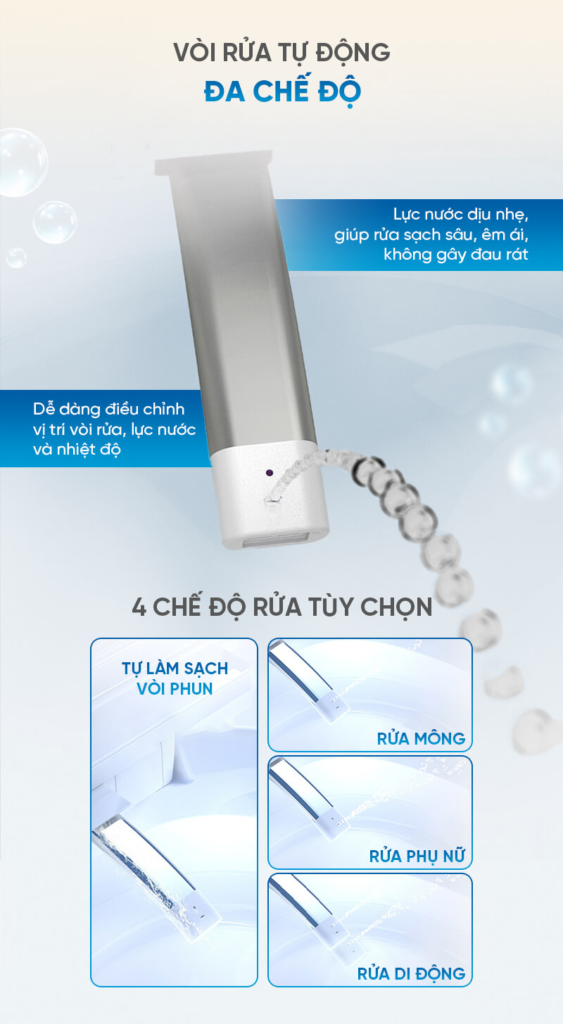 vòi rửa sạch.đóng mở k cần chạm nữa tiện. bệ ngồi ấm, baN ĐẦU DÙNG chưa quen nhưng rất tiện