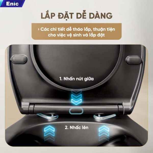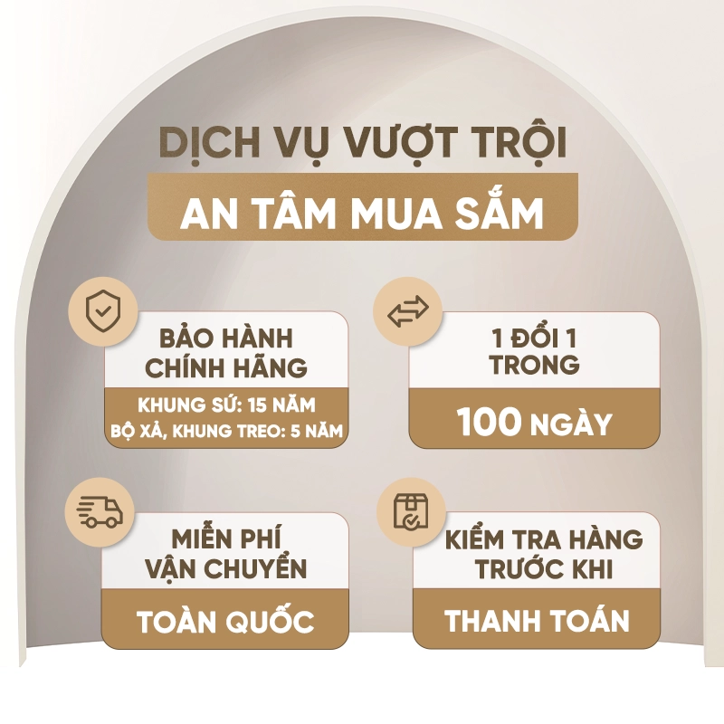 - Nắp đóng/mở giảm chấn êm ái: Nắp đóng/mở được thiết kế để giảm chấn êm ái, tránh gây tiếng động và đảm bảo an toàn khi sử dụng.