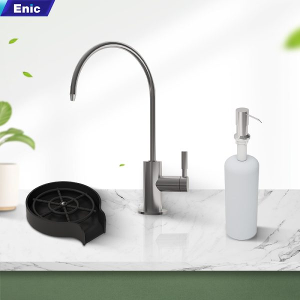 Đặc biệt, ở bồn nước rửa chén Enic còn có công nghệ xúc tác nước loại bỏ vi khuẩn. Đồng thời kết hợp với sóng siêu âm bóc tách bụi bẩn, làm sạch thực phẩm chuyên sâu.