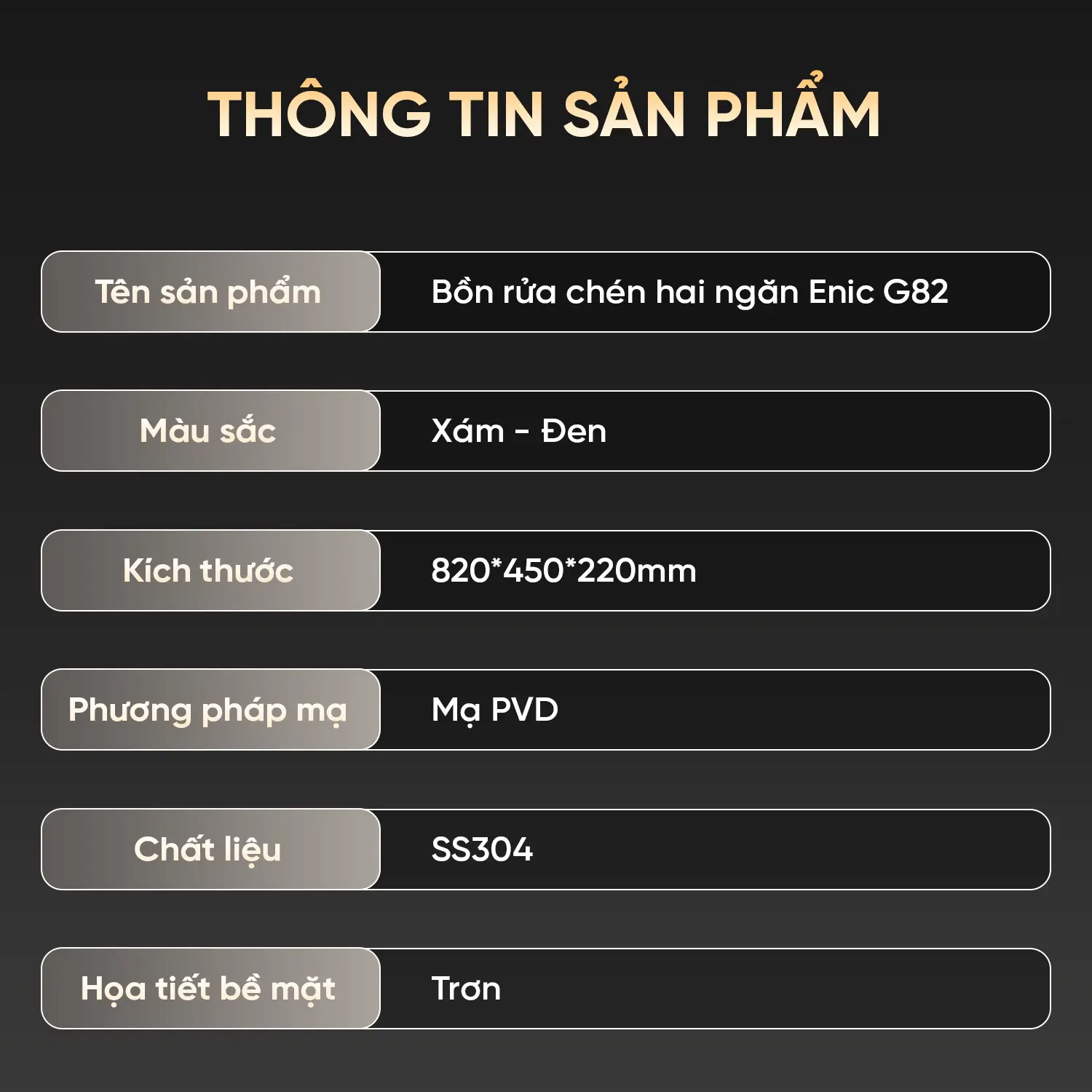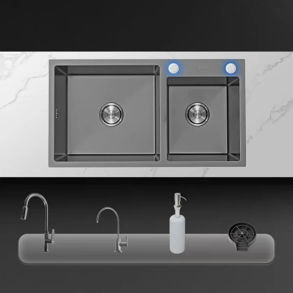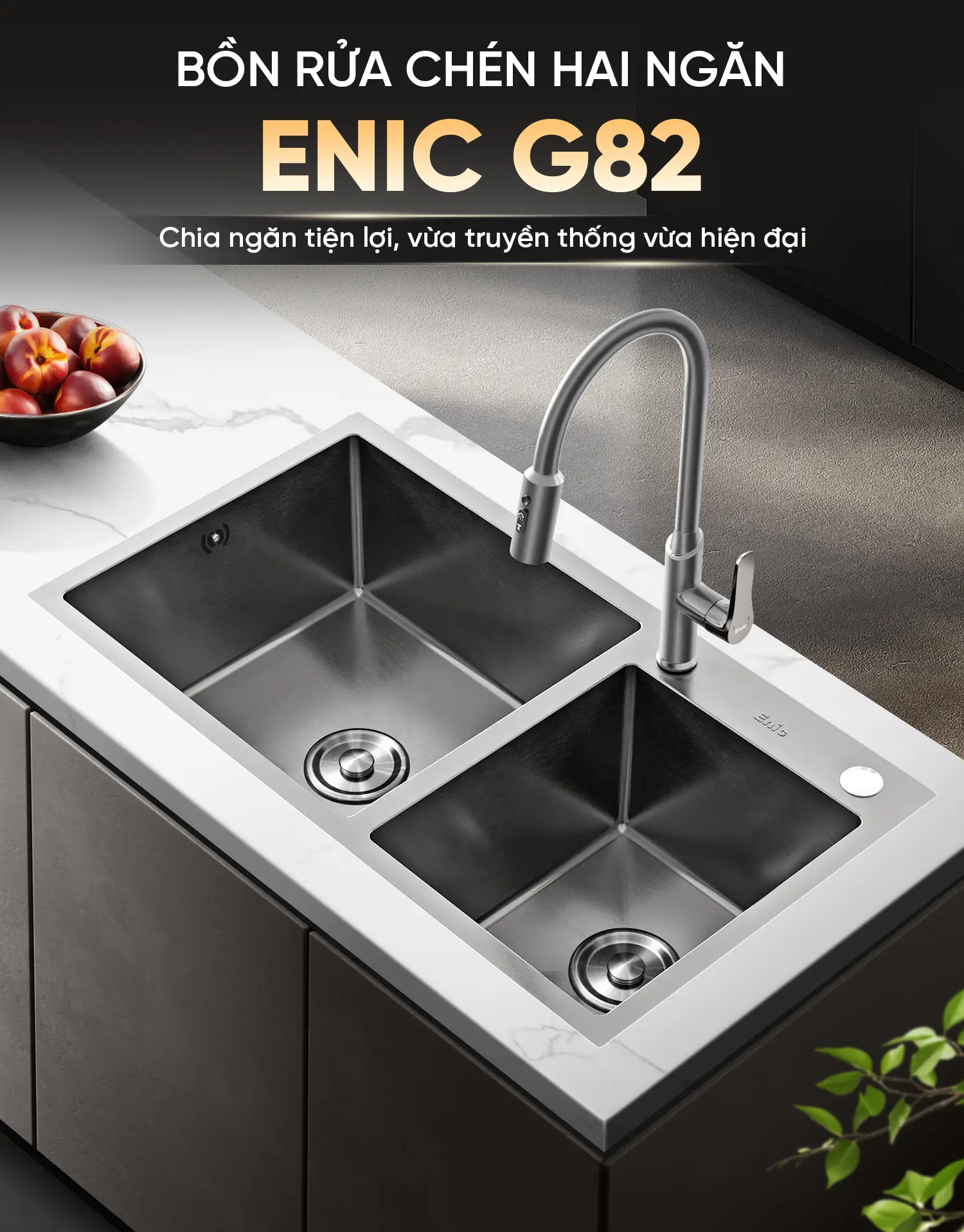 Tối ưu hóa công việc nội trợ với Bồn rửa chén hai ngăn Enic G82 – một thiết bị nhà bếp hoàn hảo cho những gia đình bận rộn. Với thiết kế chia hai hố rộng rãi, G82 cho phép bạn vừa có thể rửa bát đĩa, vừa sơ chế thực phẩm cùng lúc một cách vệ sinh và khoa học.