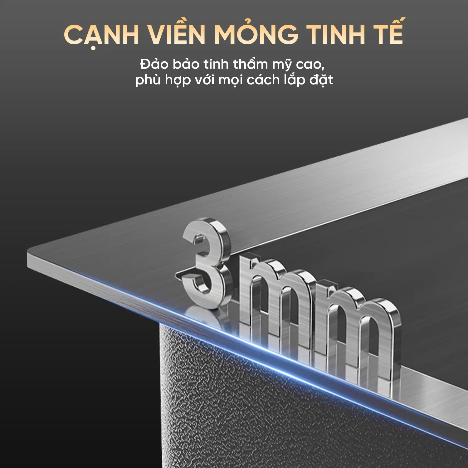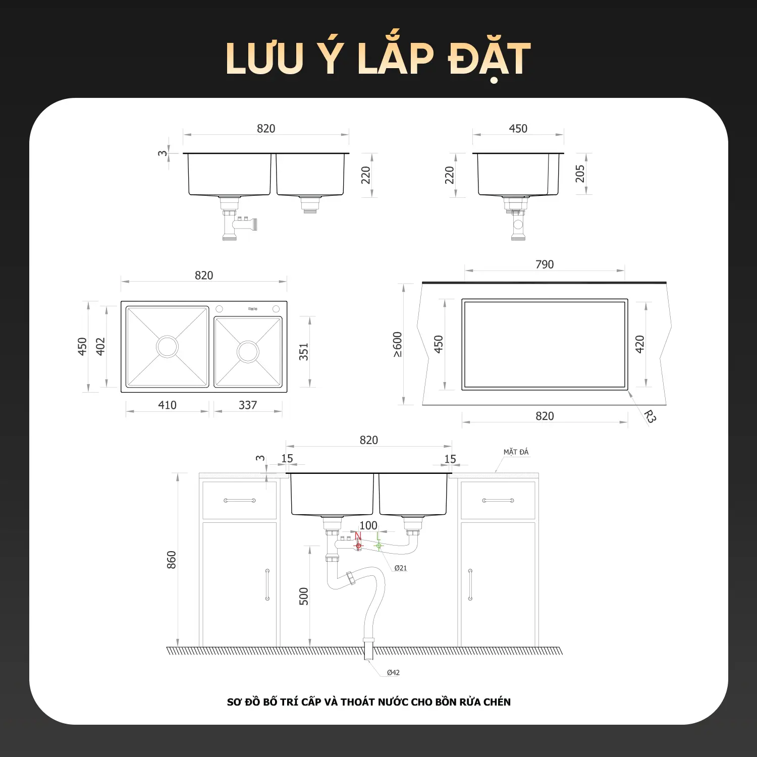 Phương thức lắp đặt: Linh hoạt theo kiểu Lắp dương (đặt lên trên mặt đá) hoặc Bán âm tùy theo phong cách thiết kế của tủ bếp.