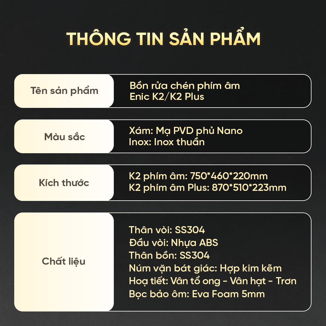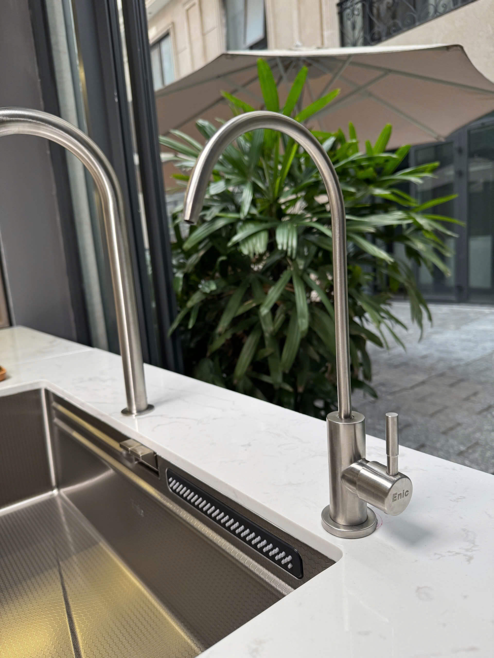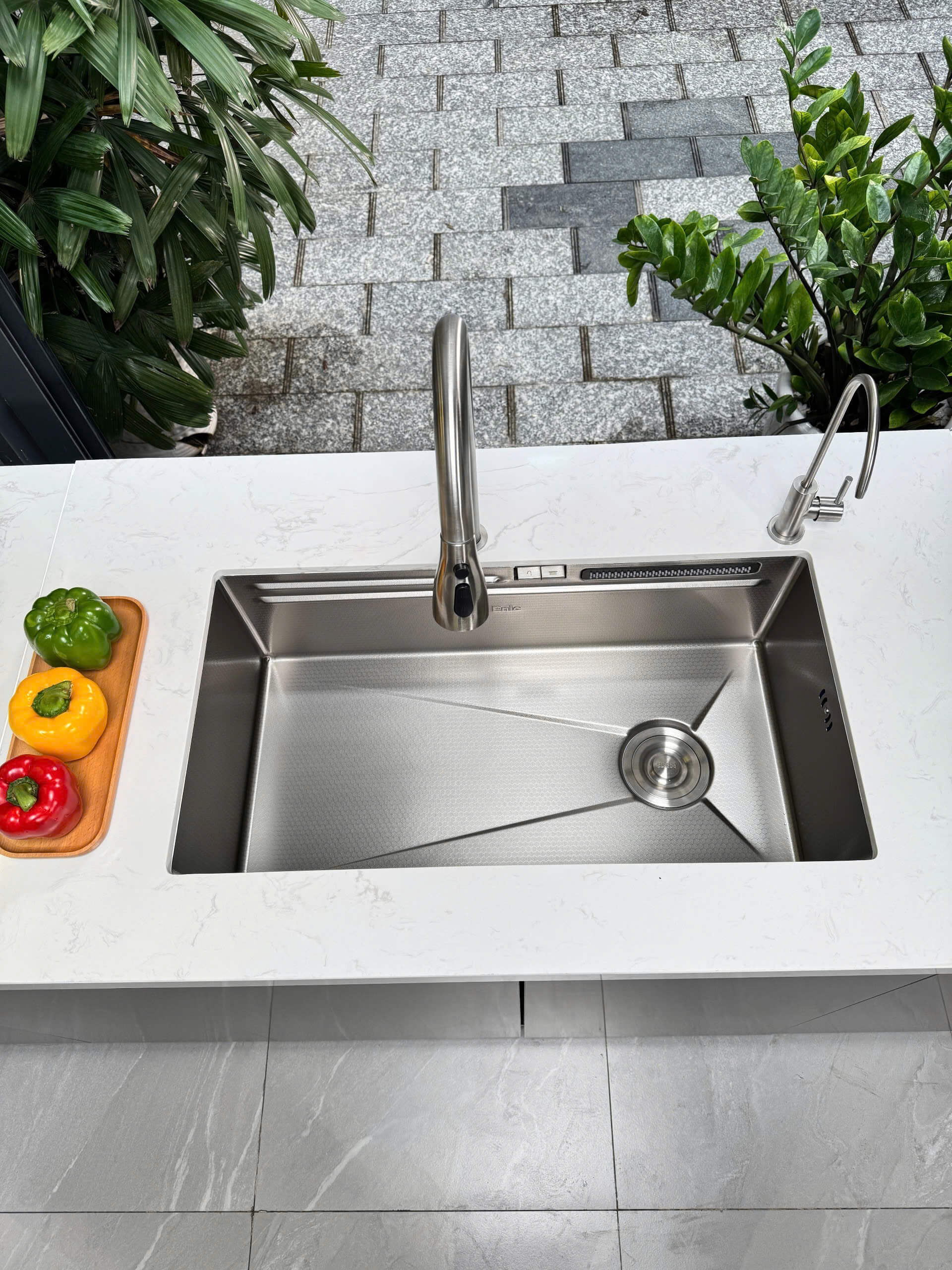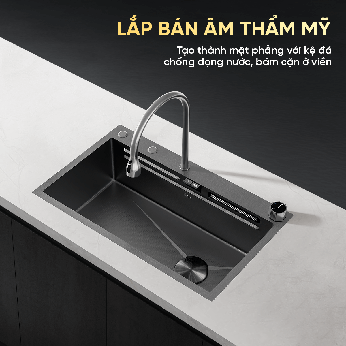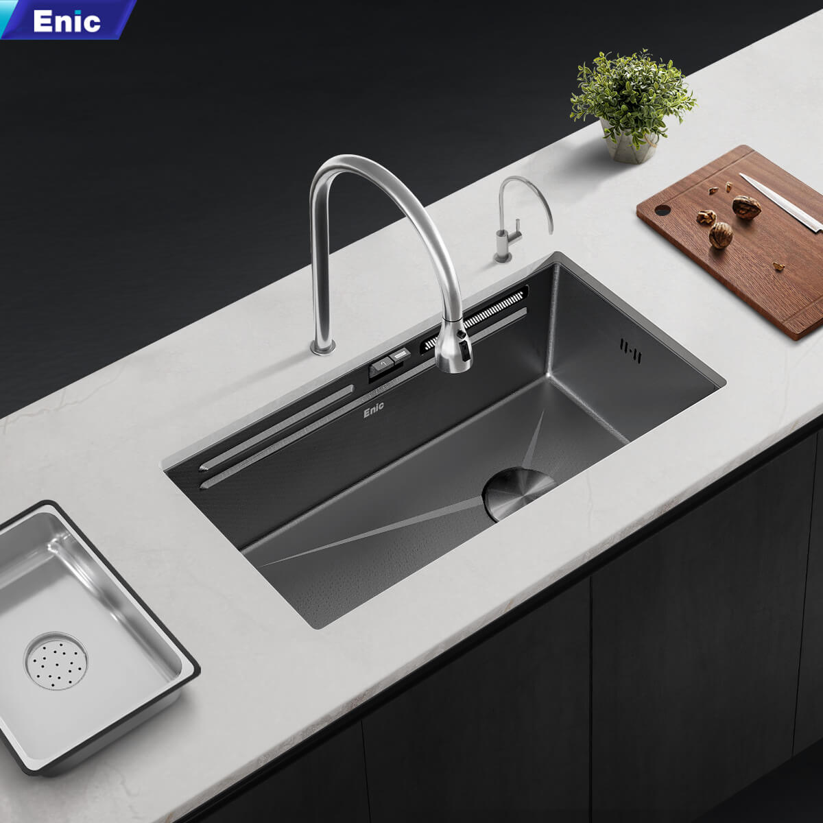 Đưa tính năng điều khiển thông minh vào khu vực dọn rửa với Bồn rửa chén Enic K2 Phím Âm – một bước tiến lớn trong dòng Thiết bị nhà bếp. Sản phẩm này không chỉ là một chiếc bồn rửa chén đơn thuần mà còn là một trạm sơ chế đa năng, tích hợp công nghệ phím đàn hiện đại ngay trên thành chậu.