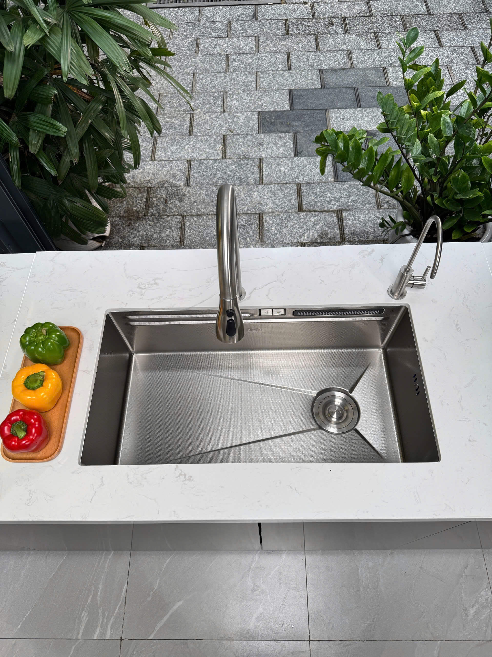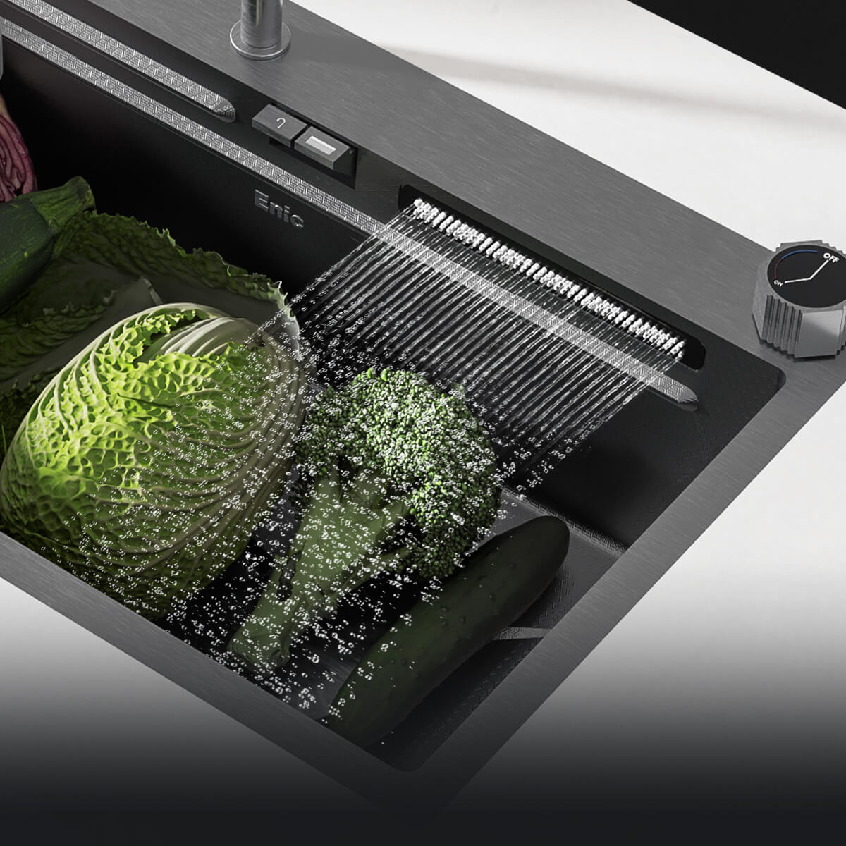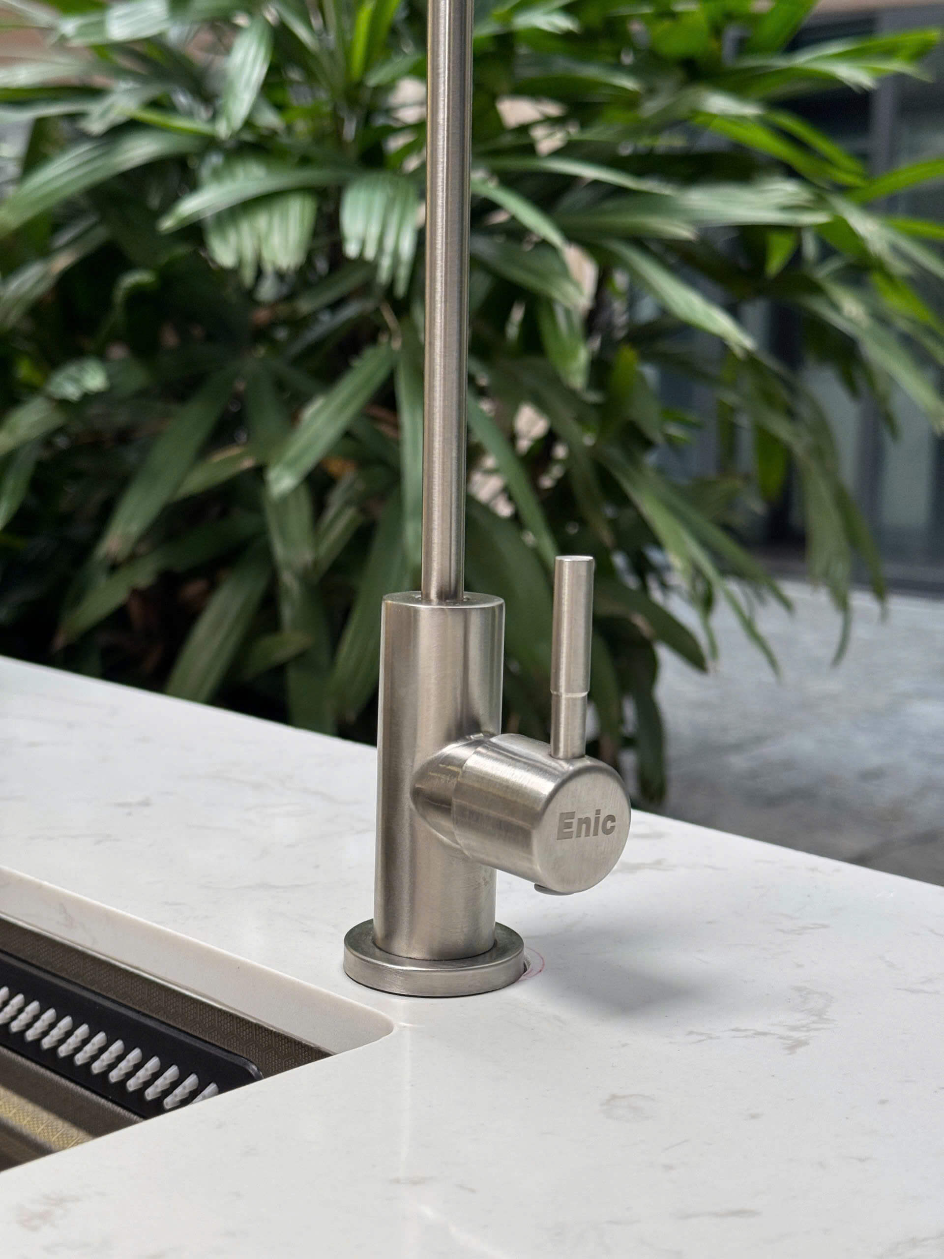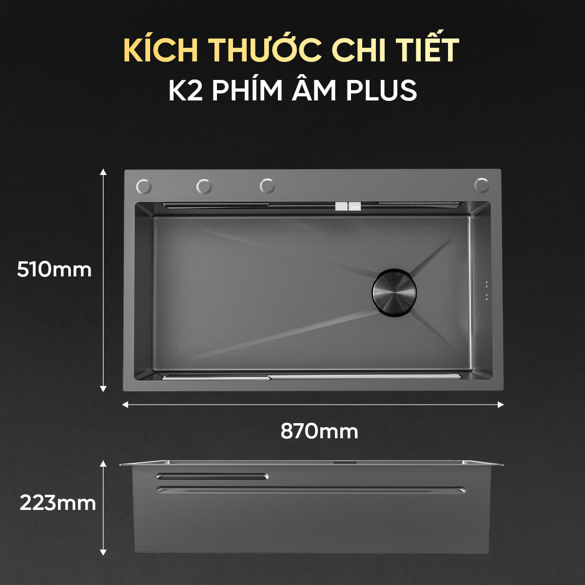 Đưa tính năng điều khiển thông minh vào khu vực dọn rửa với Bồn rửa chén Enic K2 Phím Âm – một bước tiến lớn trong dòng Thiết bị nhà bếp. Sản phẩm này không chỉ là một chiếc bồn rửa chén đơn thuần mà còn là một trạm sơ chế đa năng, tích hợp công nghệ phím đàn hiện đại ngay trên thành chậu.