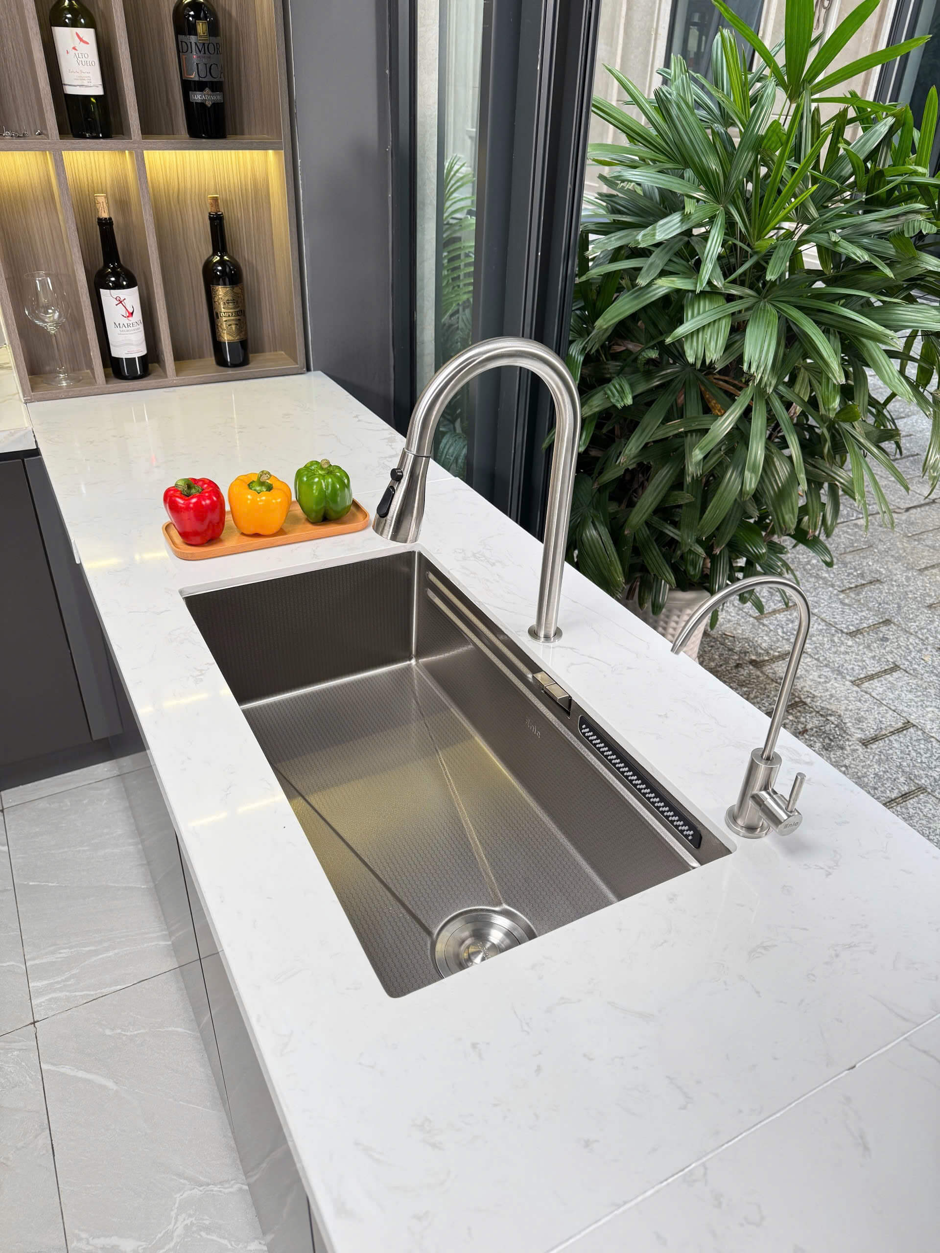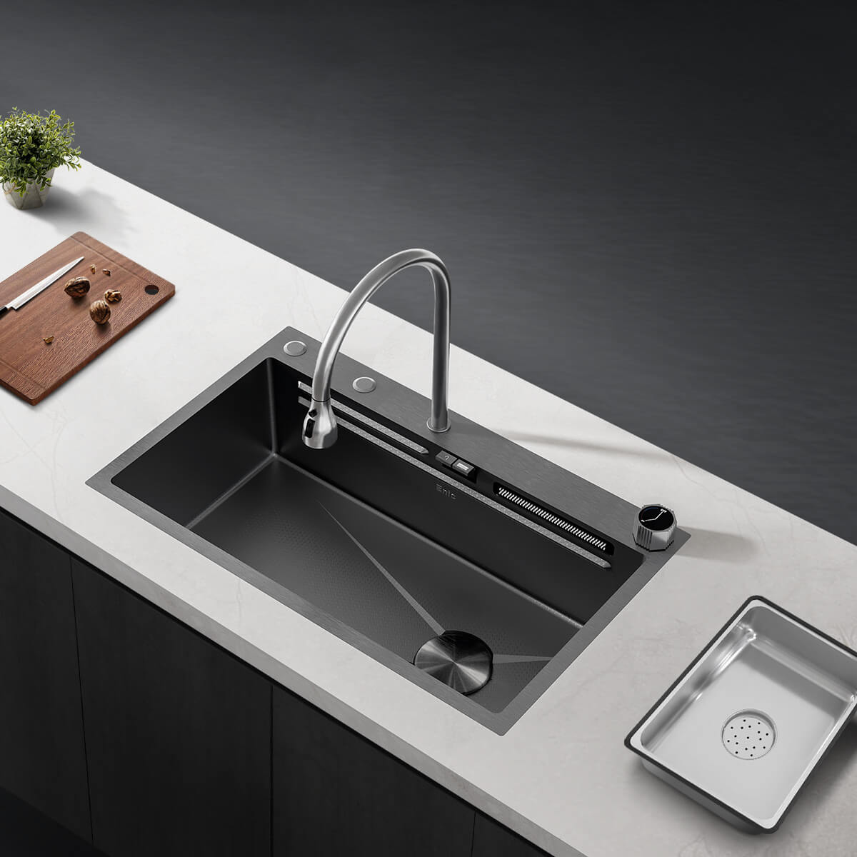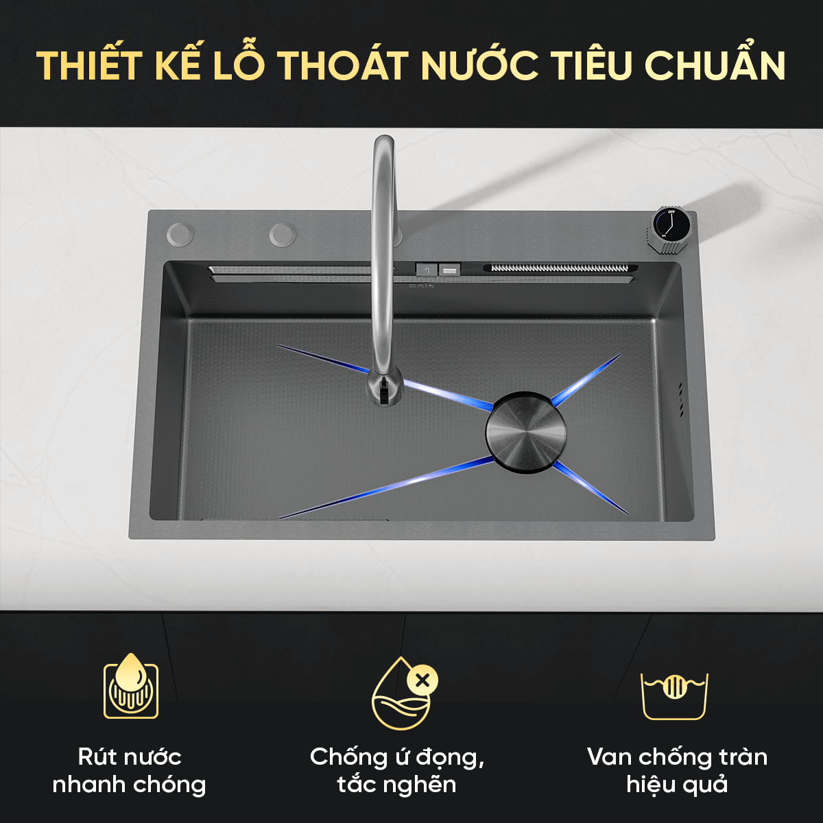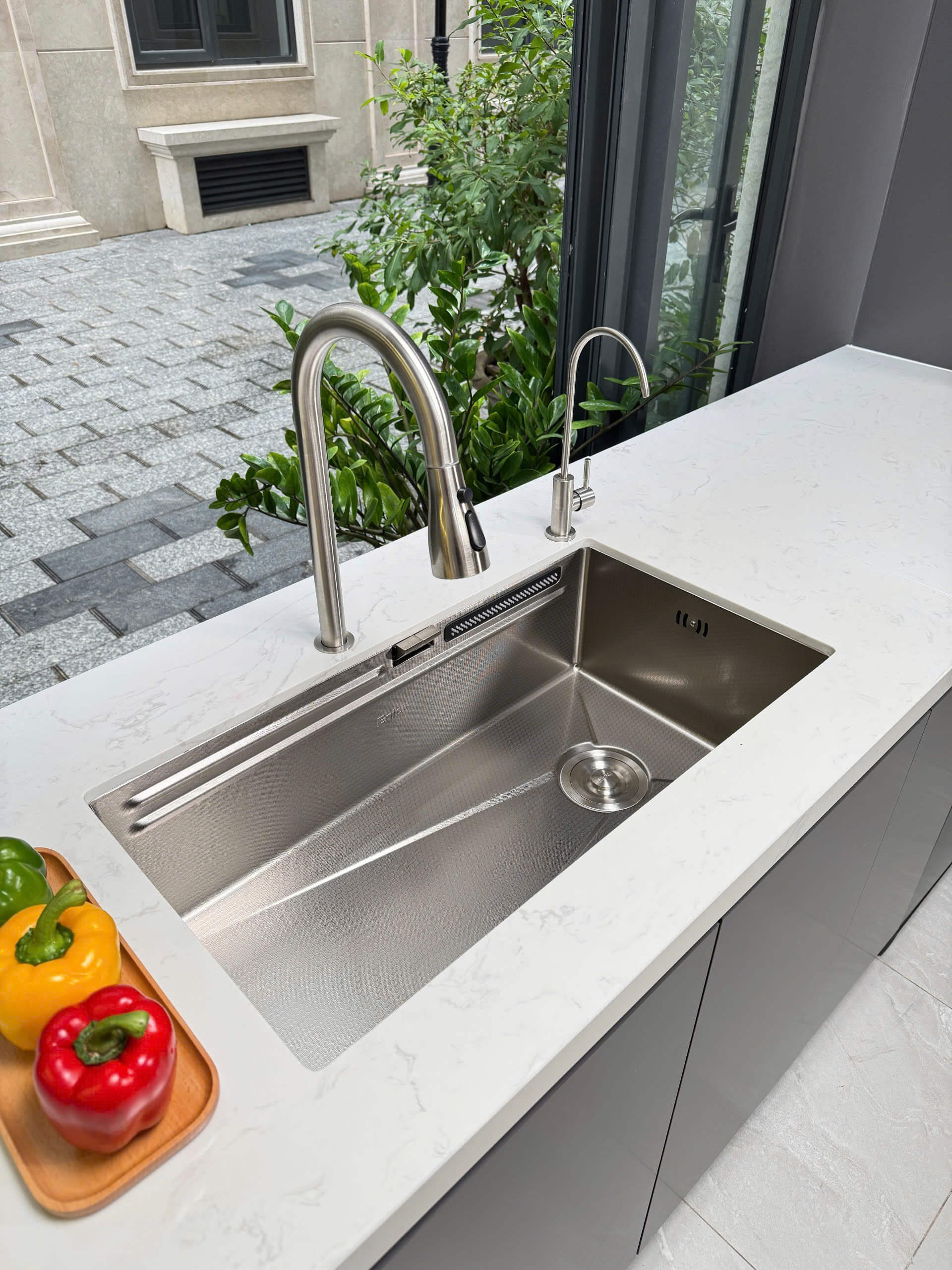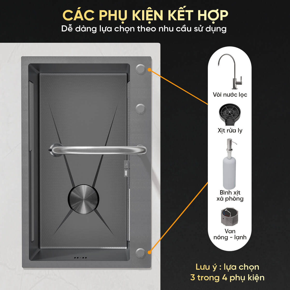 Đưa tính năng điều khiển thông minh vào khu vực dọn rửa với Bồn rửa chén Enic K2 Phím Âm – một bước tiến lớn trong dòng Thiết bị nhà bếp. Sản phẩm này không chỉ là một chiếc bồn rửa chén đơn thuần mà còn là một trạm sơ chế đa năng, tích hợp công nghệ phím đàn hiện đại ngay trên thành chậu.