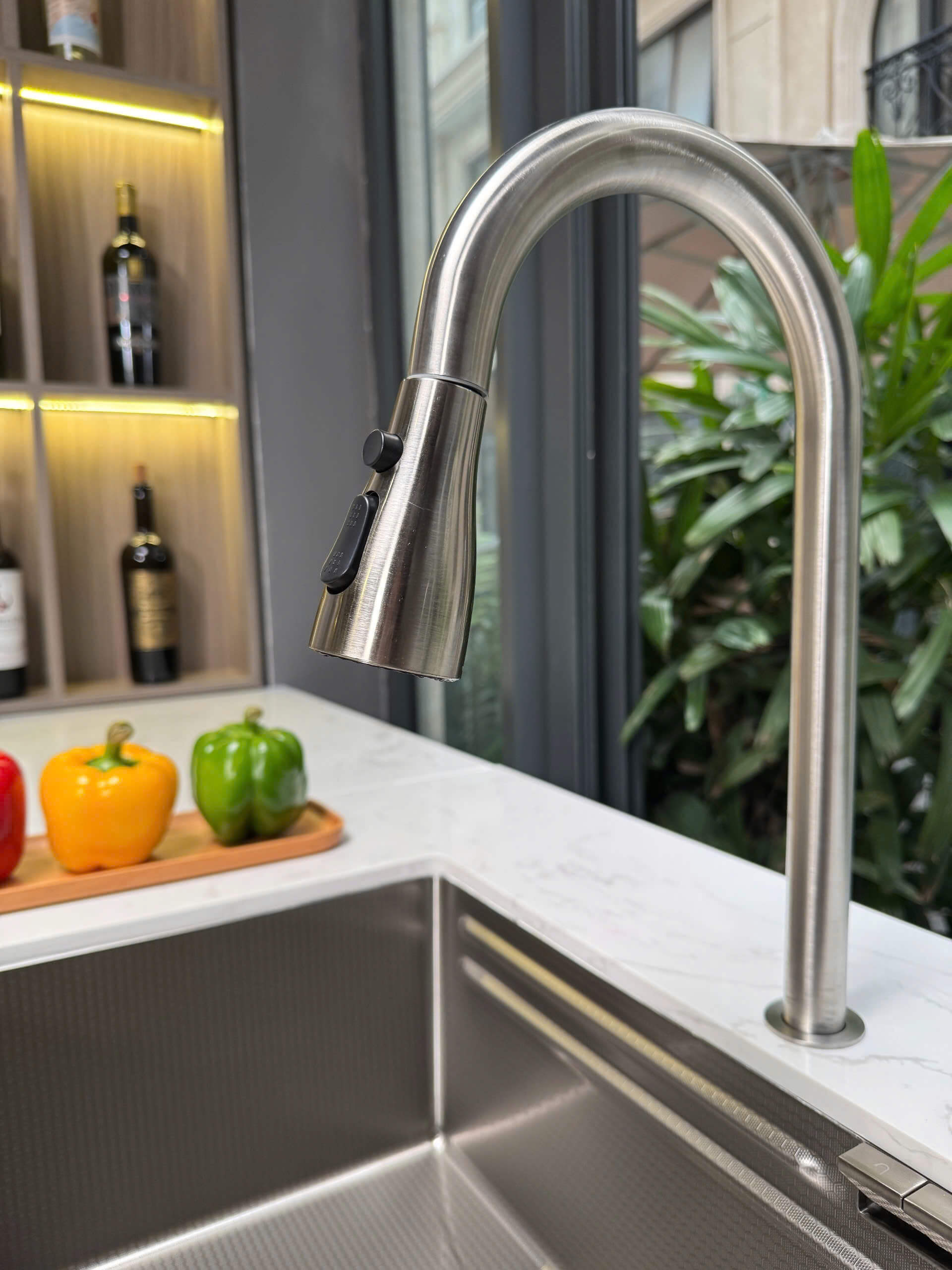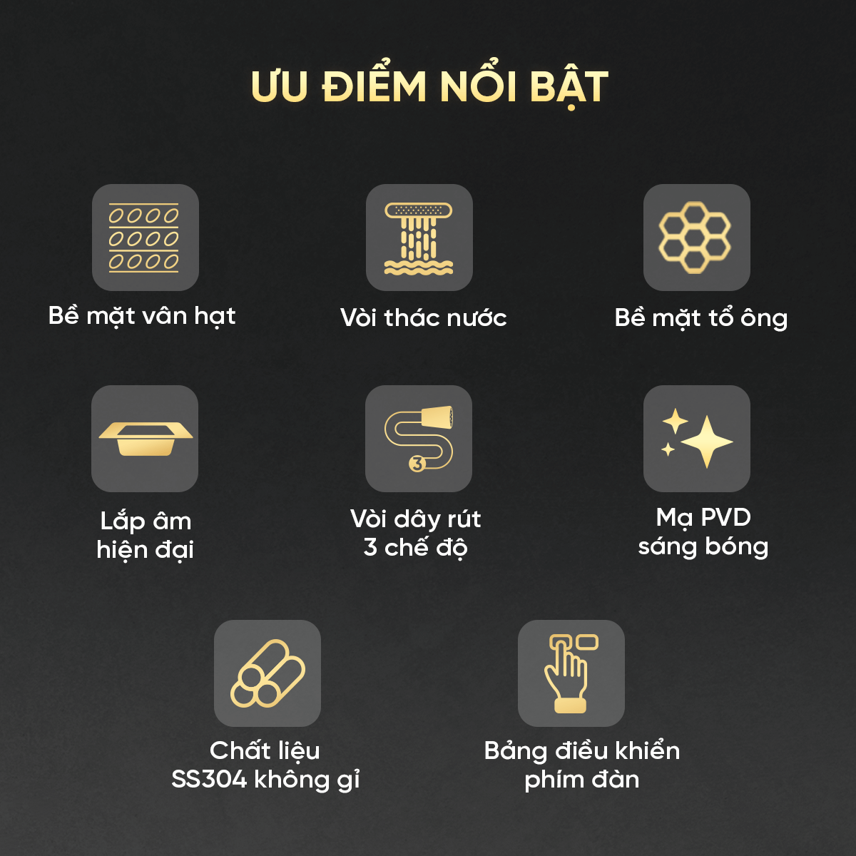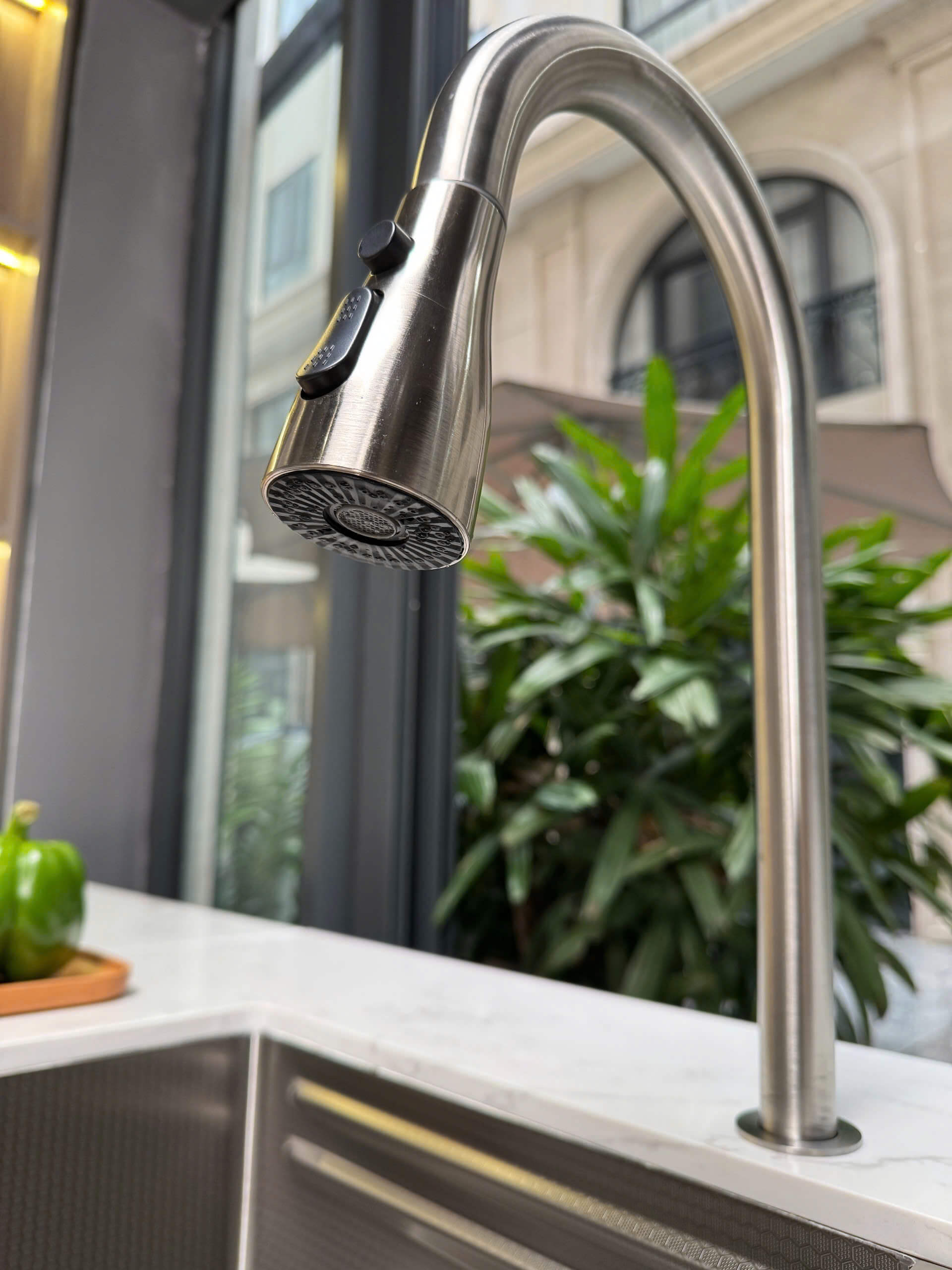 Đi kèm với bồn là vòi dây rút 3 chế độ có thể xoay 360 độ, cung cấp các chế độ phun đa dạng: