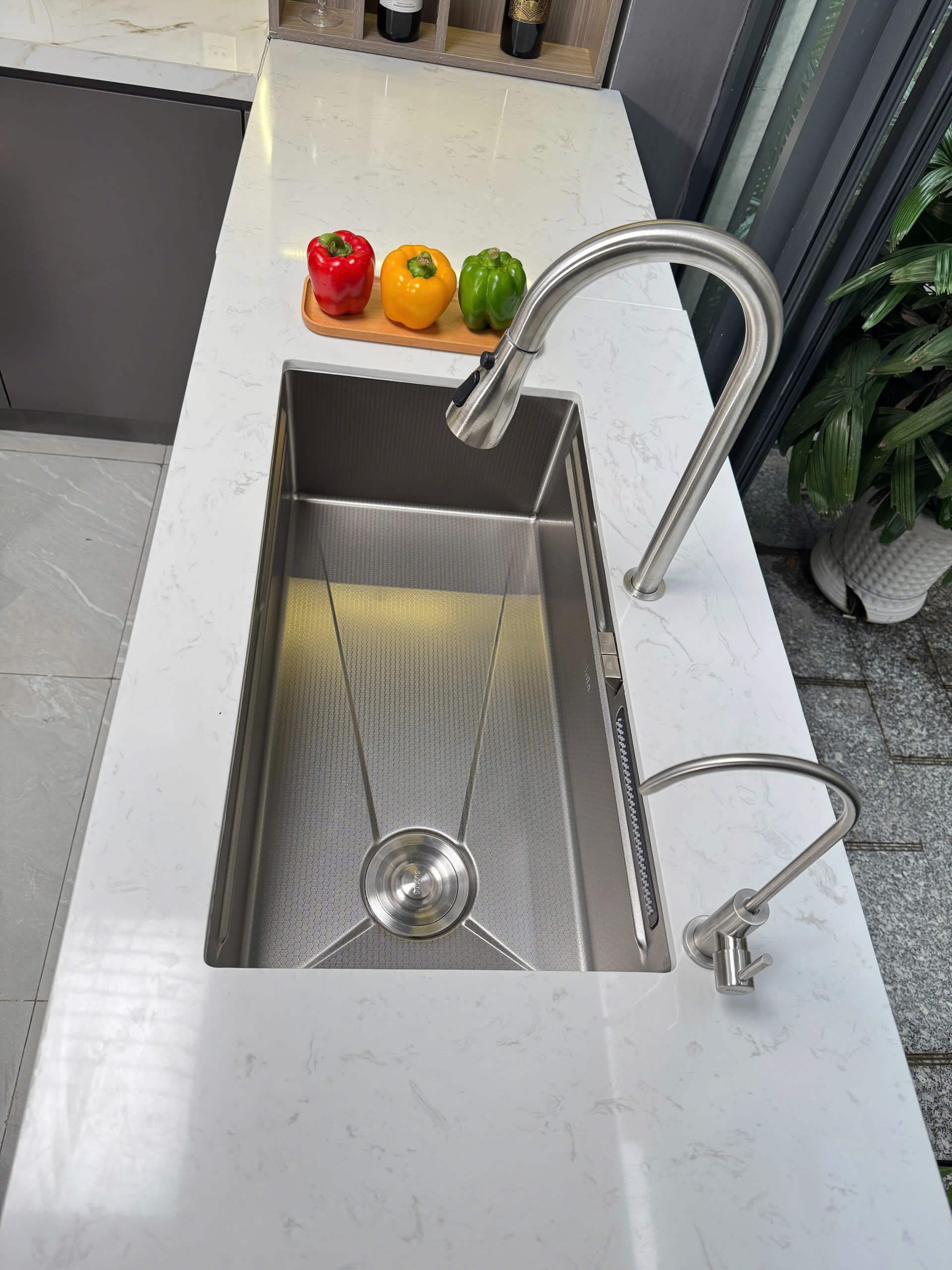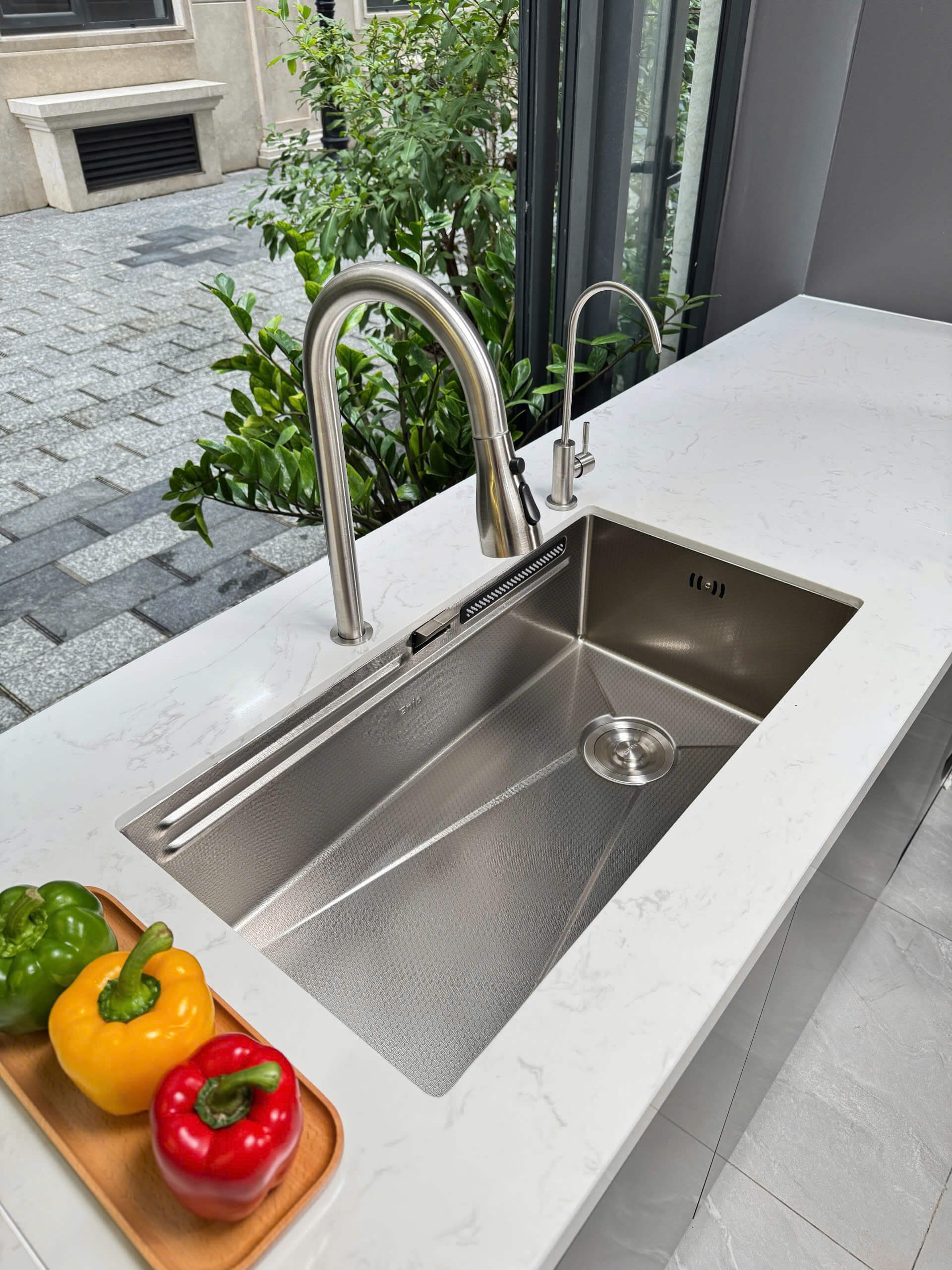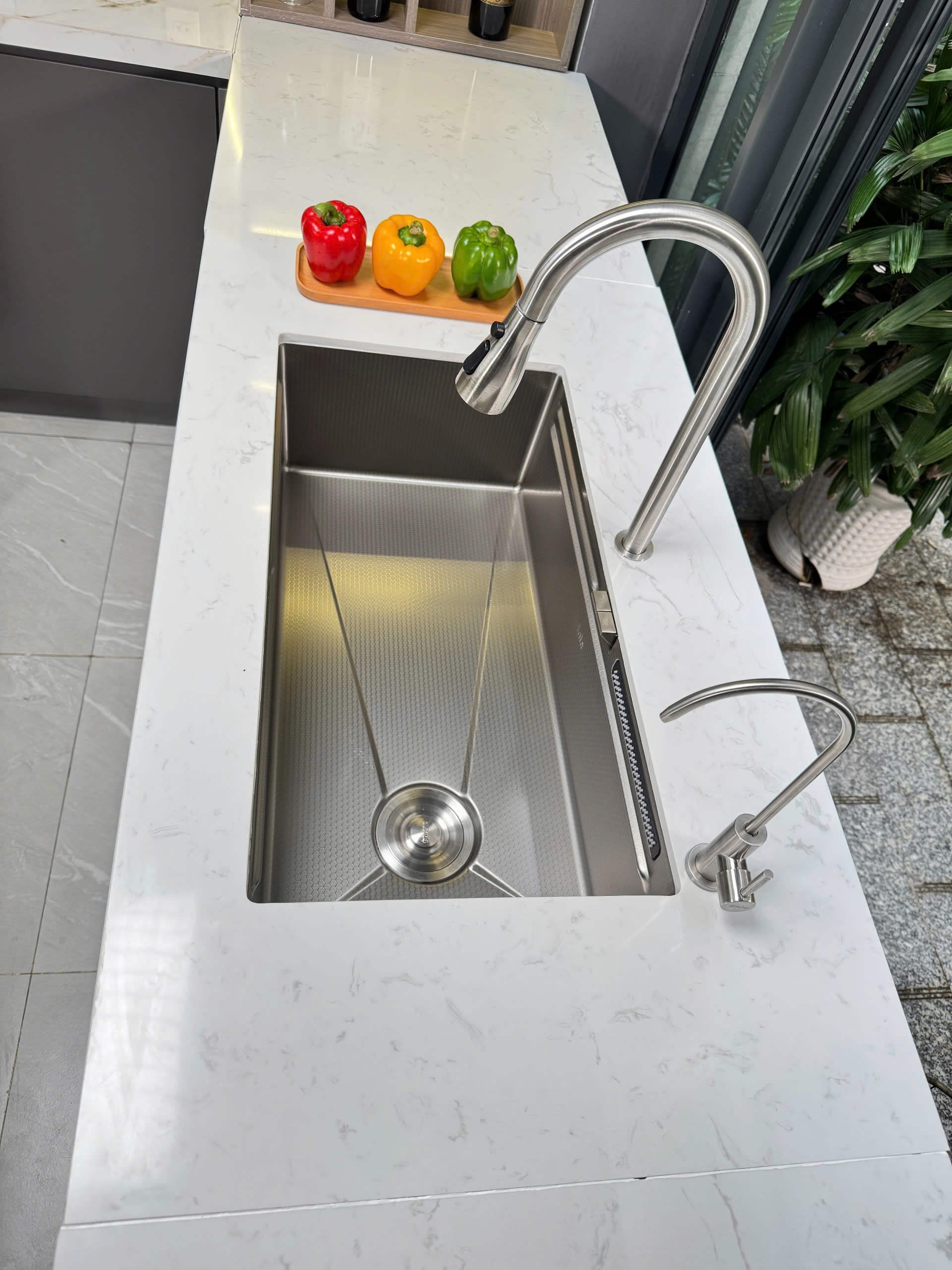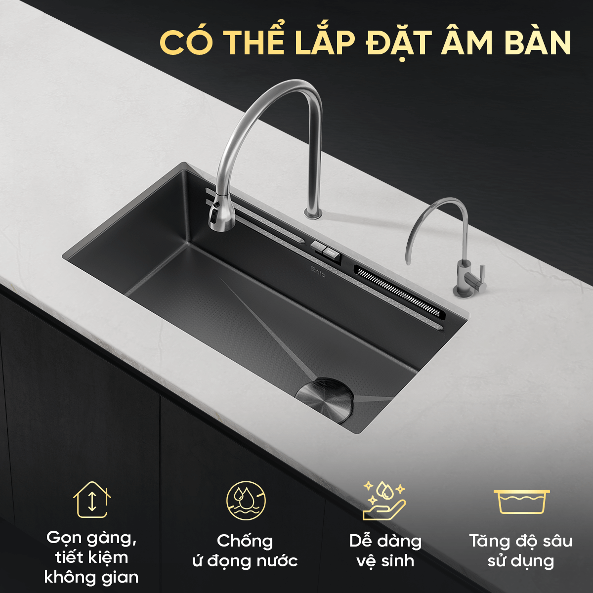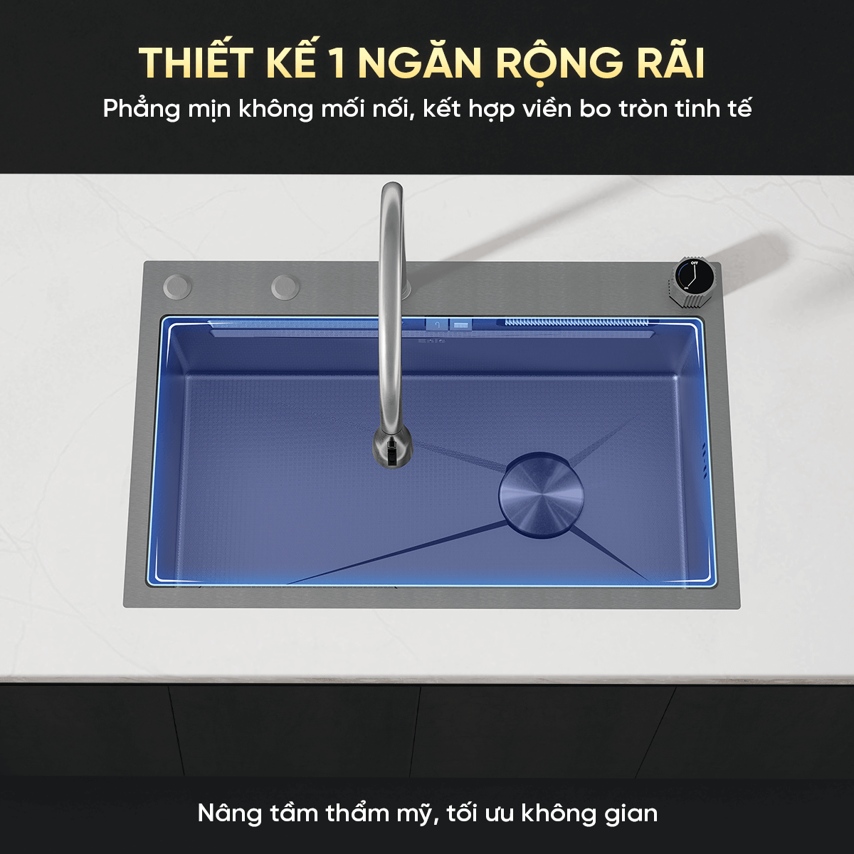 Bồn đẹp, dễ phối bếp phong cách hiện đại, lắp âm dễ sệ sinh, bấm phím đàn tiệnh nghi, tạm thời cho 9/10