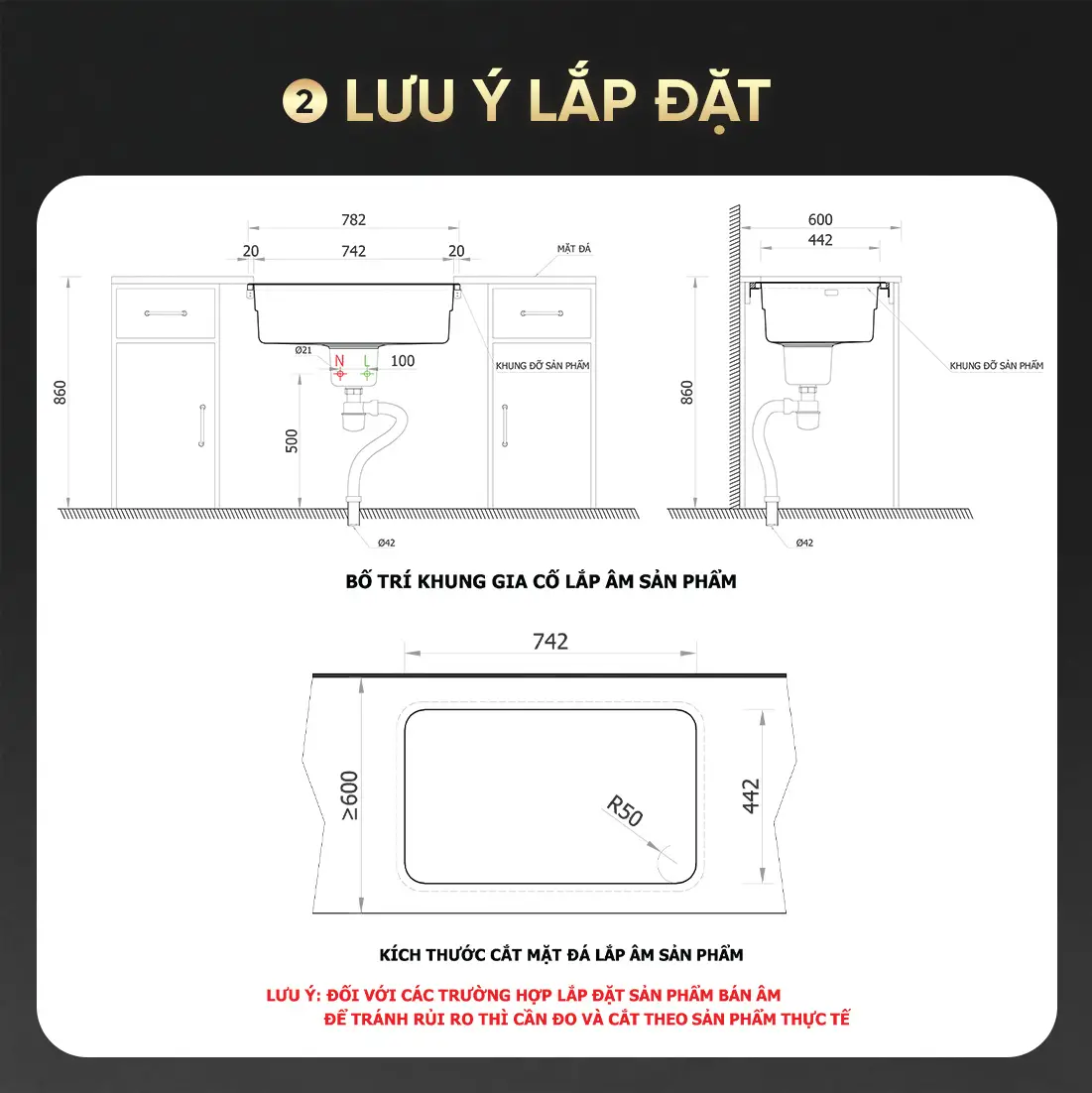 lắp âm mặt đá nên vệ sinh dễ lau một đường là sạch ko bị nước đọng quanh mép bồn nhìn bếp sang liền mạch