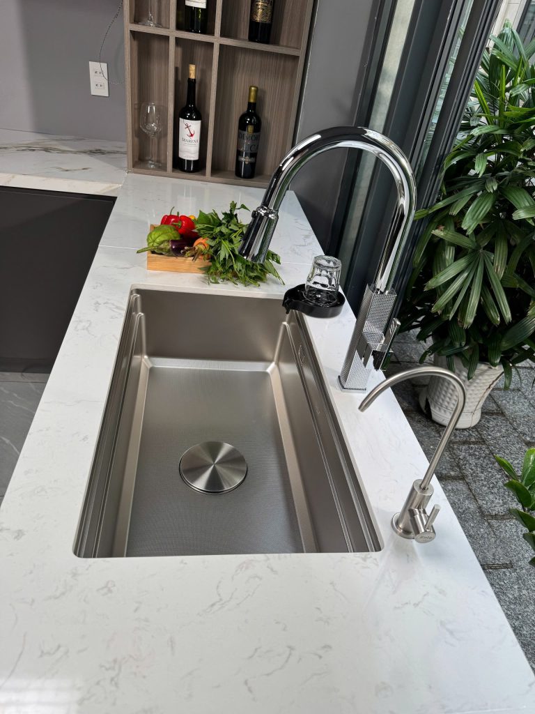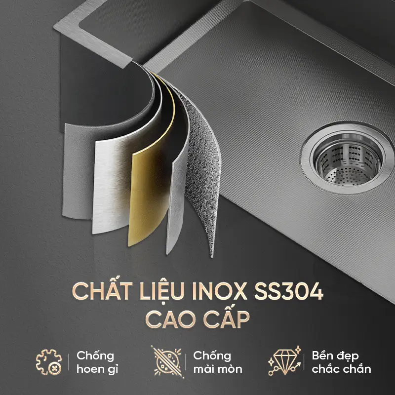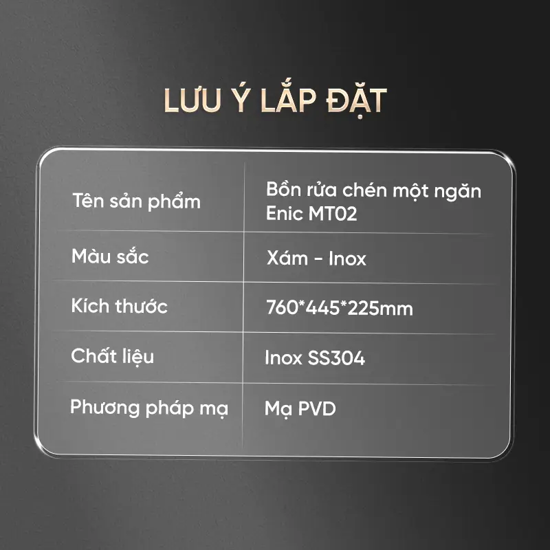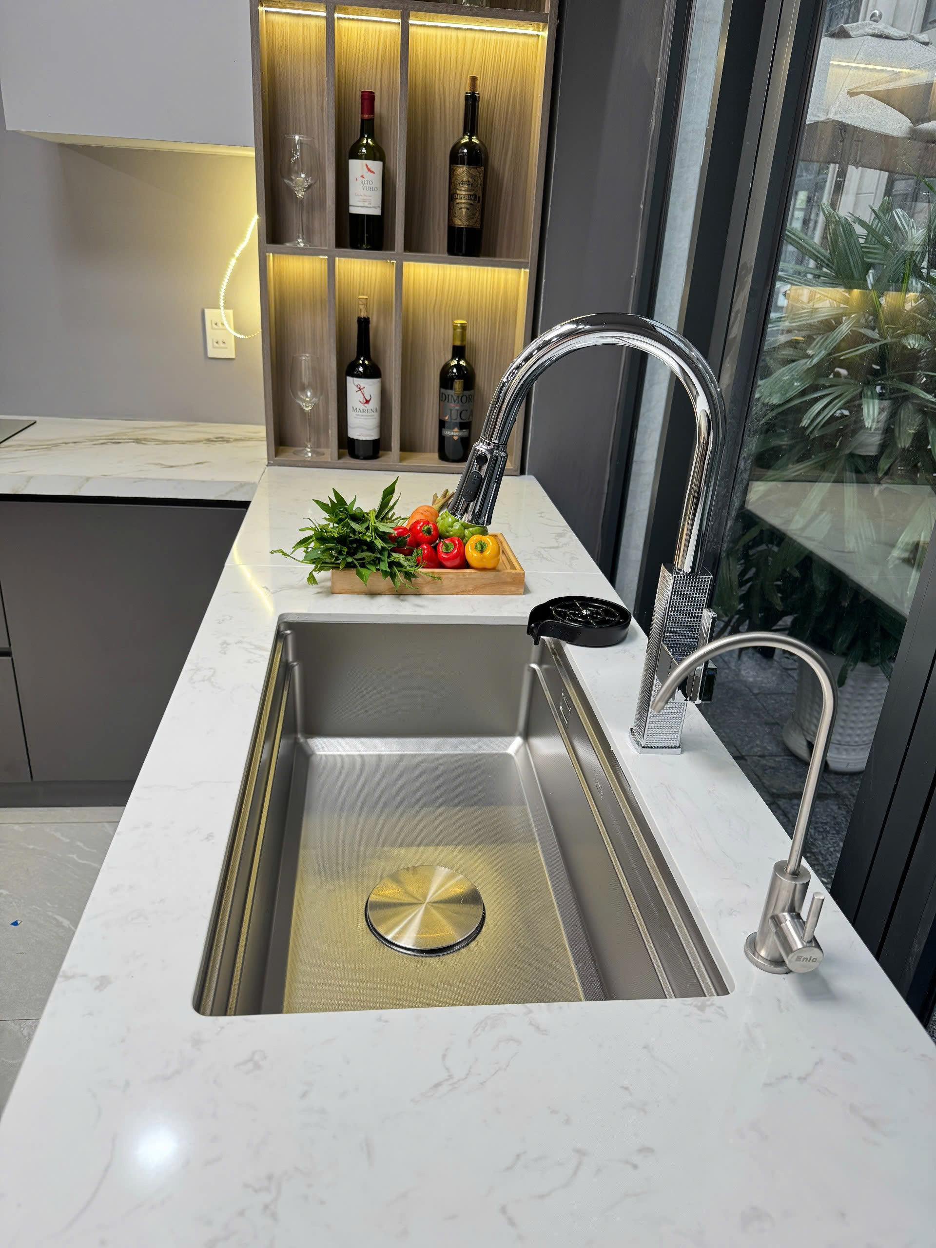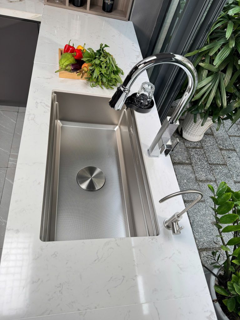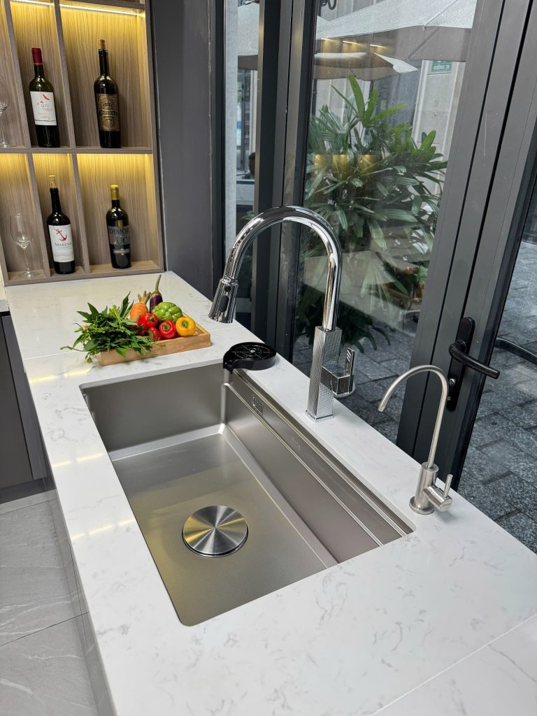 e này mạ pvd khá đeppj. khá cứng cáp, ai mua nên cân nhắc quất thêm cái vòi enic nx cho nó đồng bộ chứ nhà mik đây lắp vòi inox hãng khá nó bị lặc quẻ :